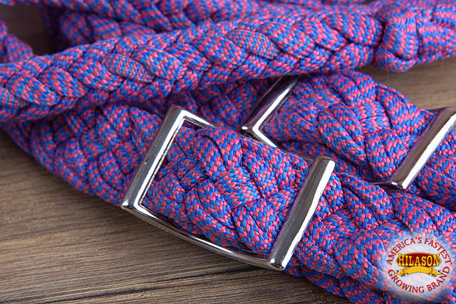 1" X 8 Ft. Hilason Braided Poly Barrel Racing Contest Flat Reins Multicolor