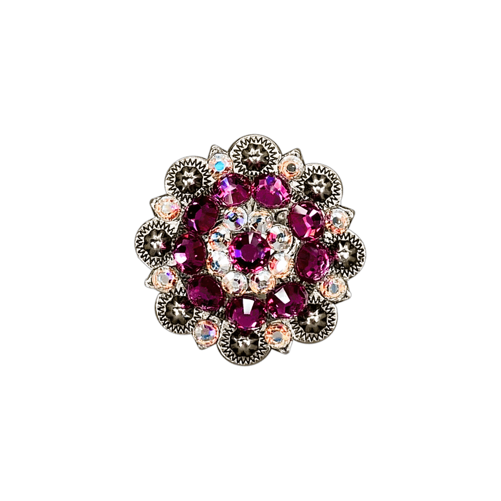 Fuchsia & AB Antique Silver 1.5" European Crystal Concho