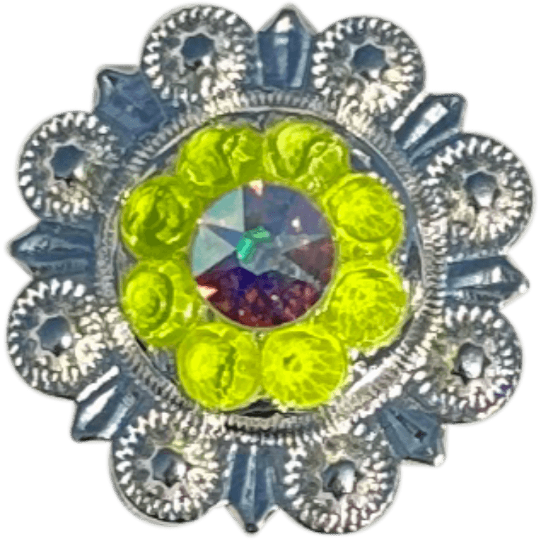 Neon Yellow and AB Bright Silver 1.5" European Crystal Concho