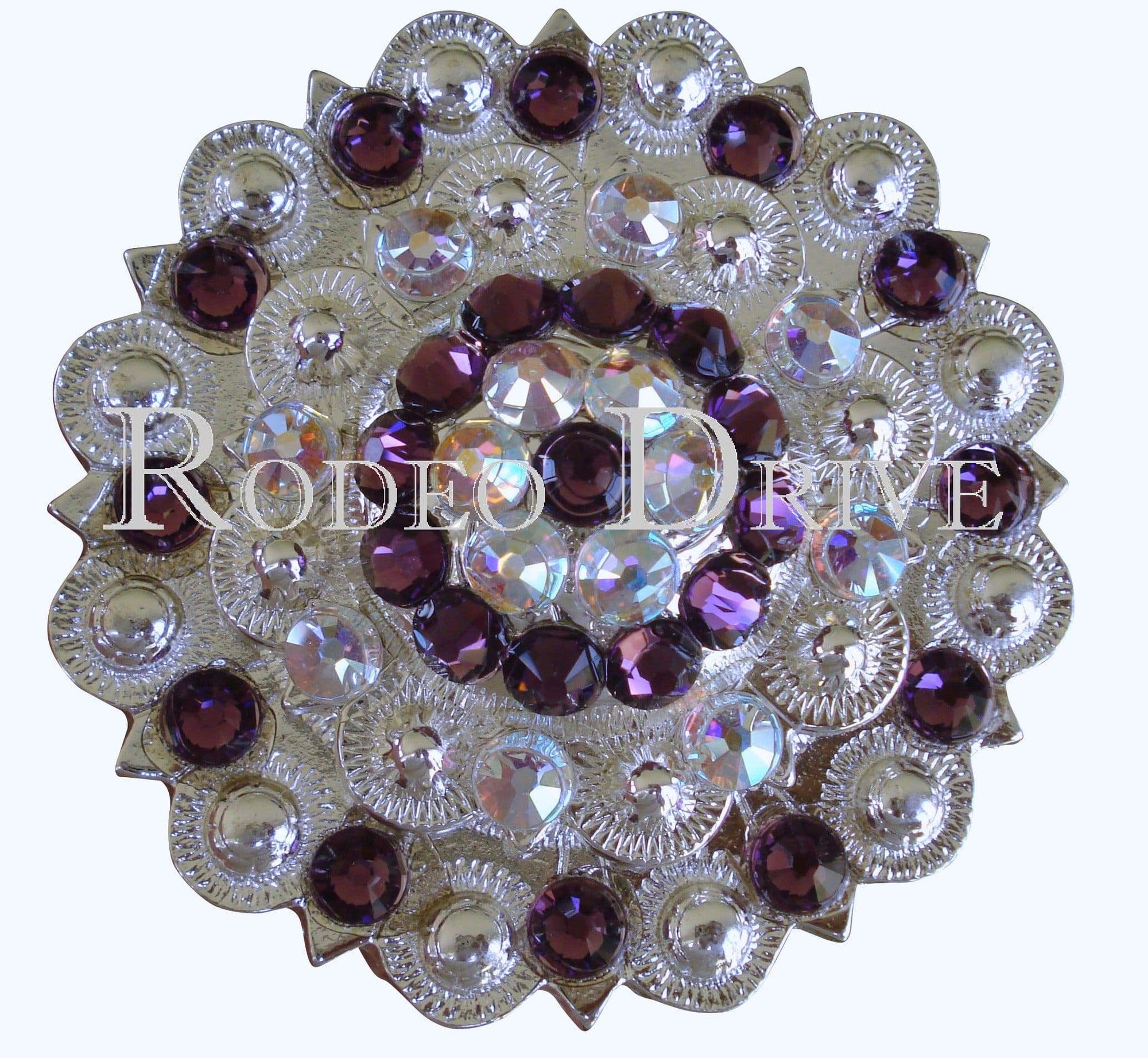 Amethyst & AB Antique Silver 1" European Crystal Concho