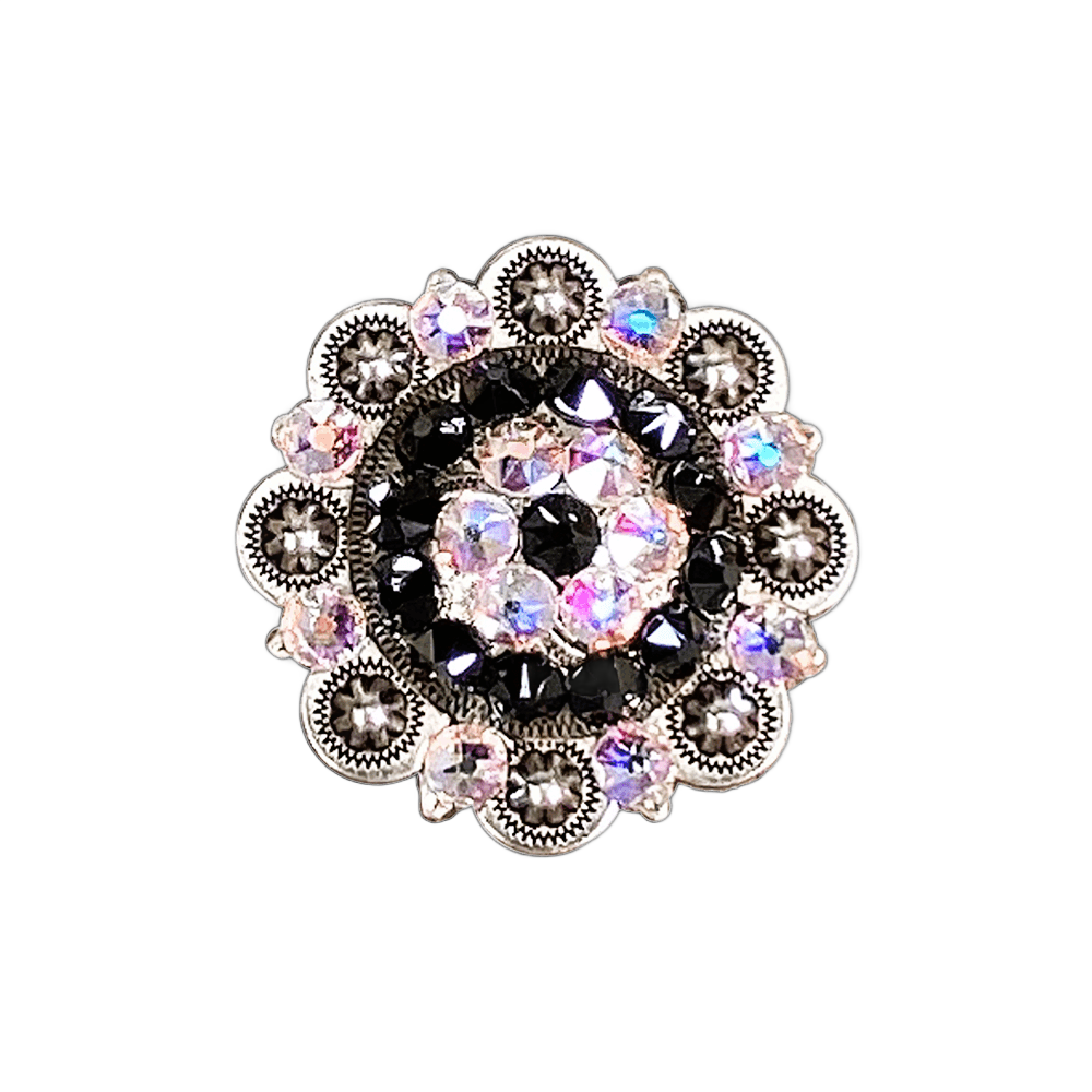 Jet, Pearl & Clear Antique Silver 2" European Crystal Concho