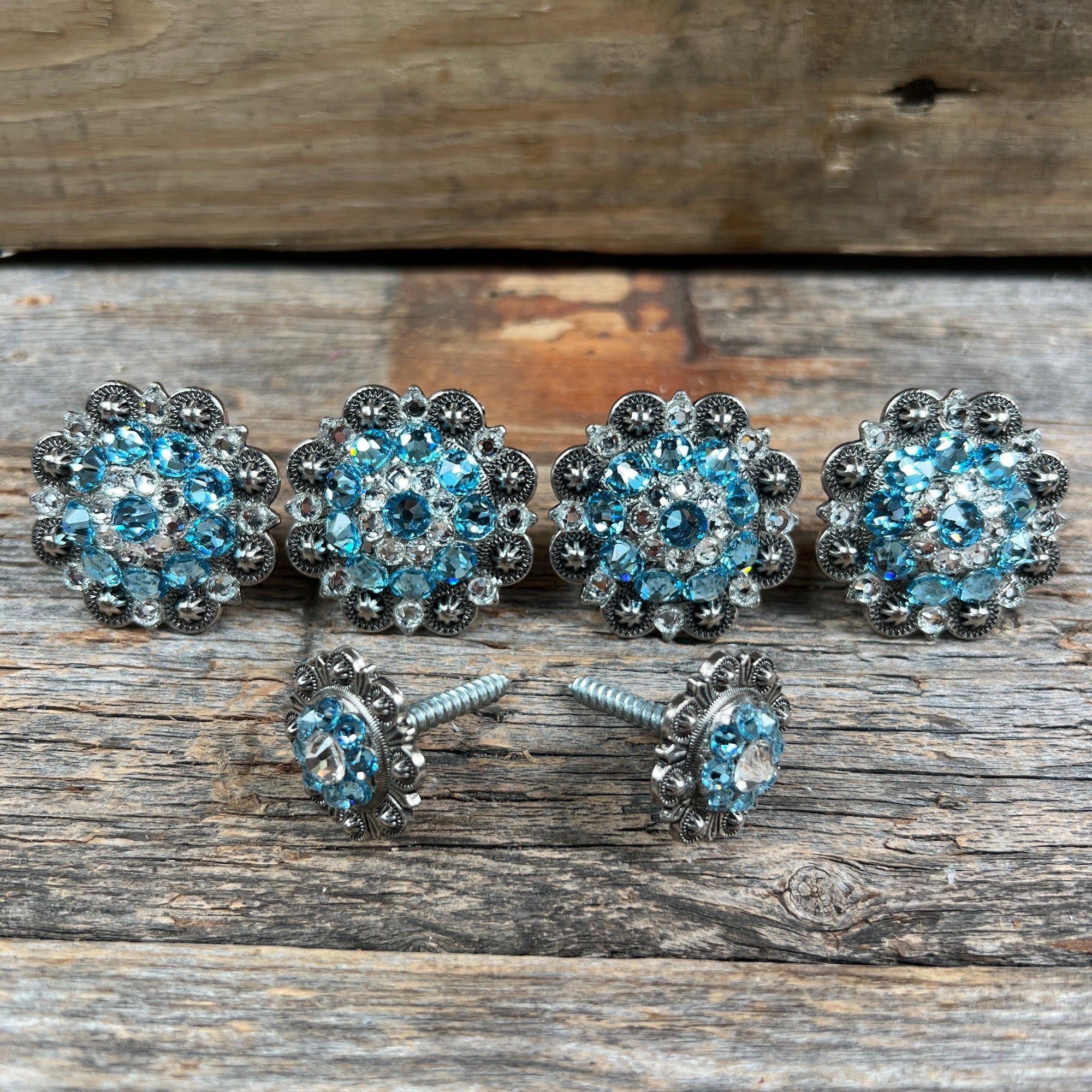 Antique Silver Light Sapphire Clear & Lilac Saddle Conchos
