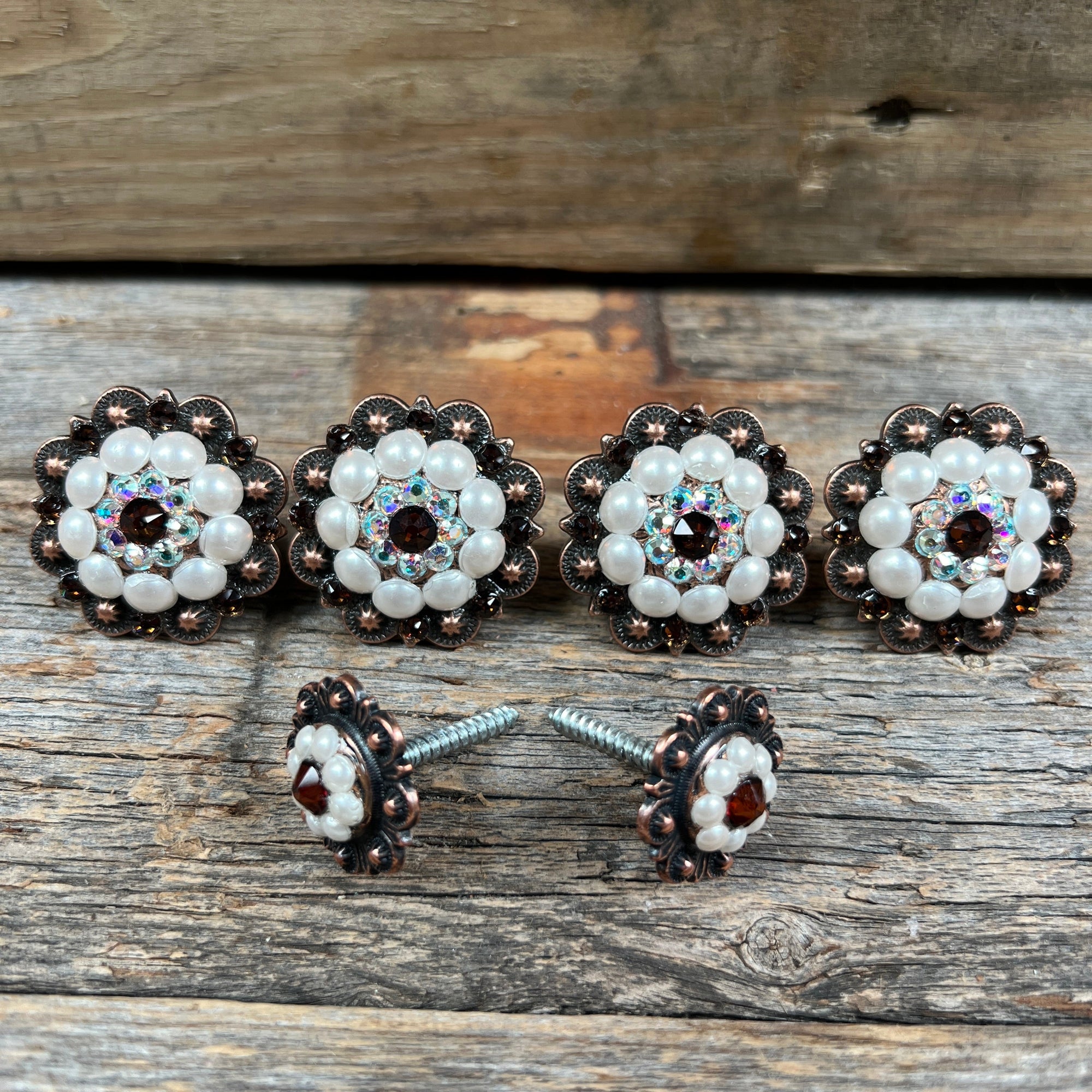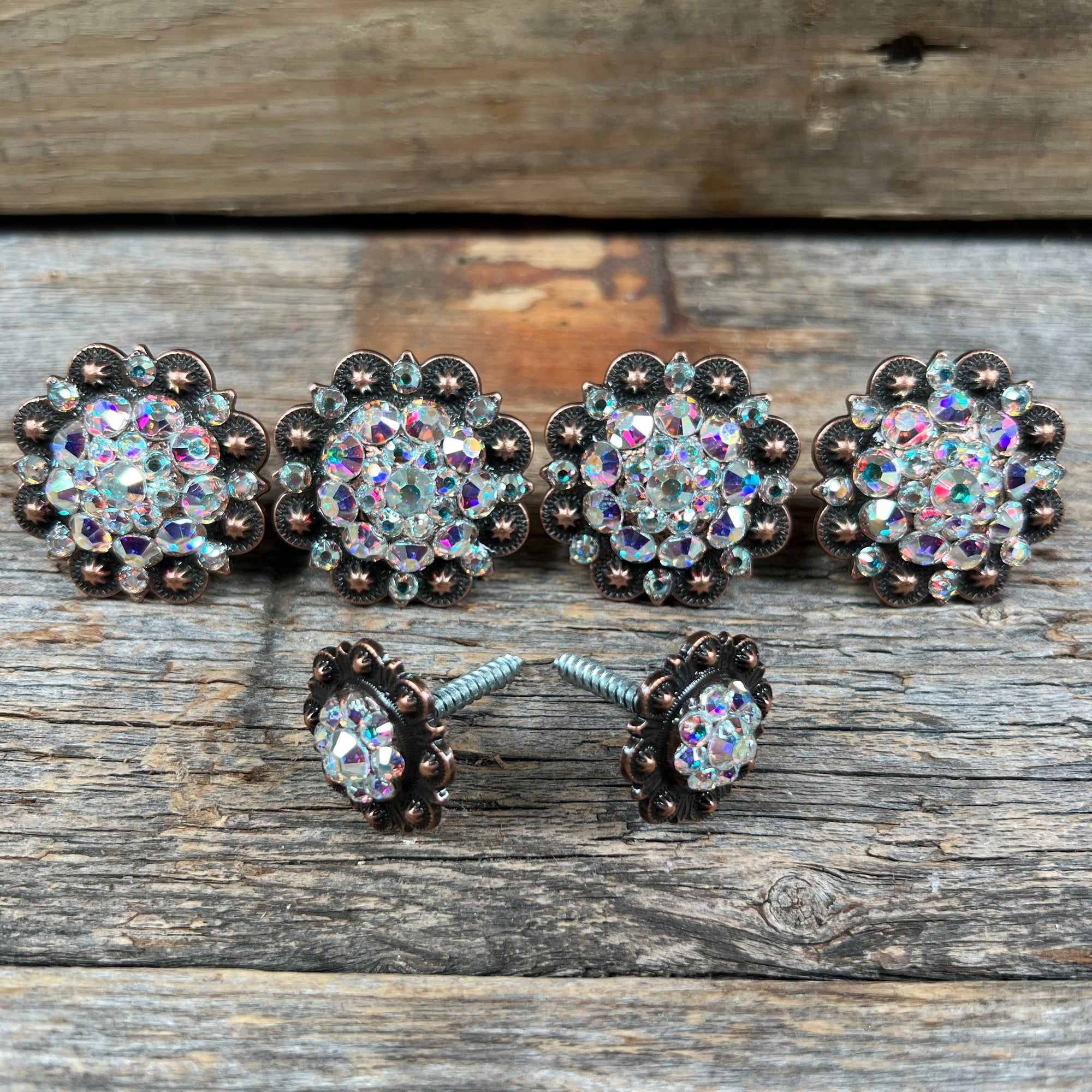 Copper AB Crystal Conchos Sizes from 1"-3" and Buckles