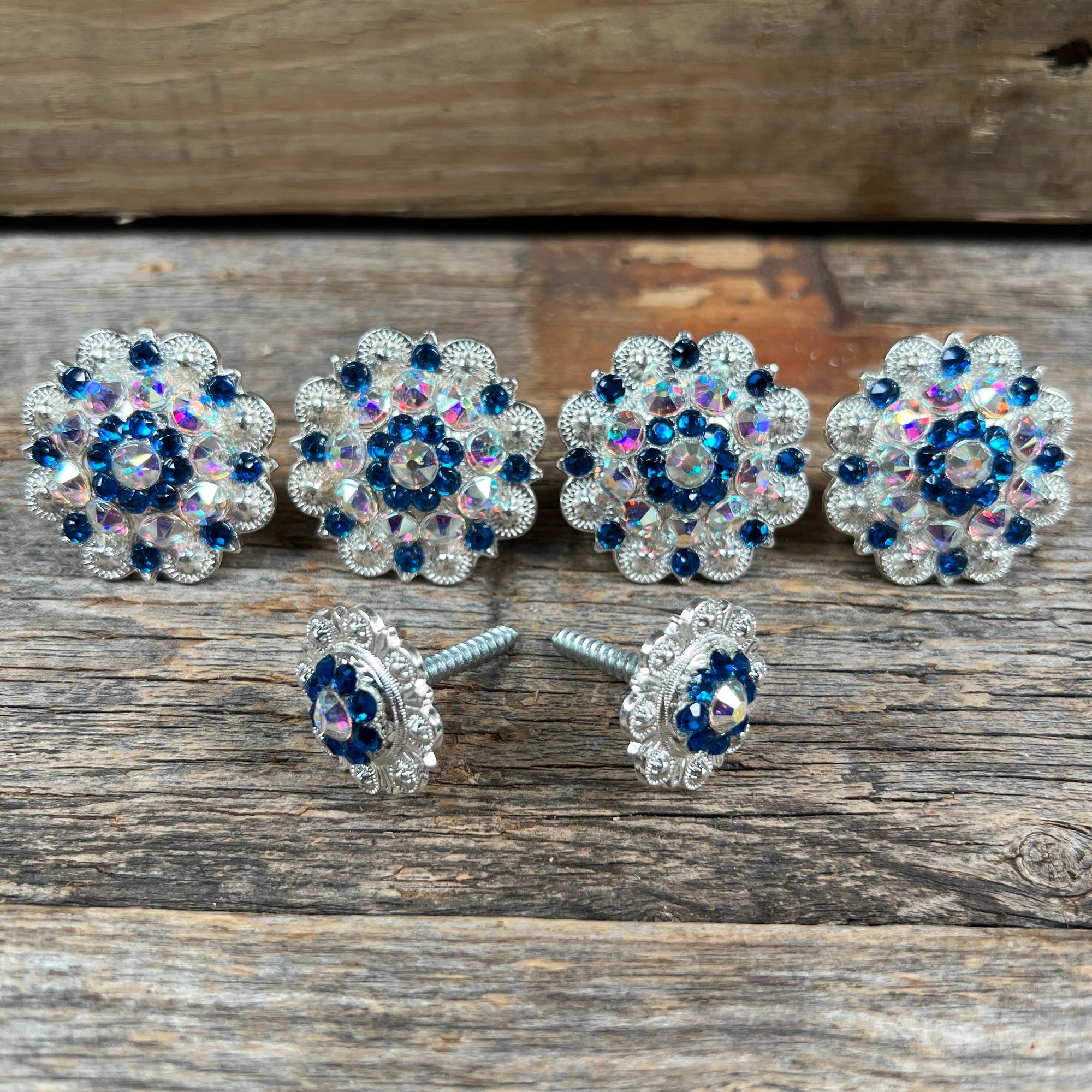Bright Silver Teal & AB Crystal Conchos - Sizes from 1"- 3" and Buckles
