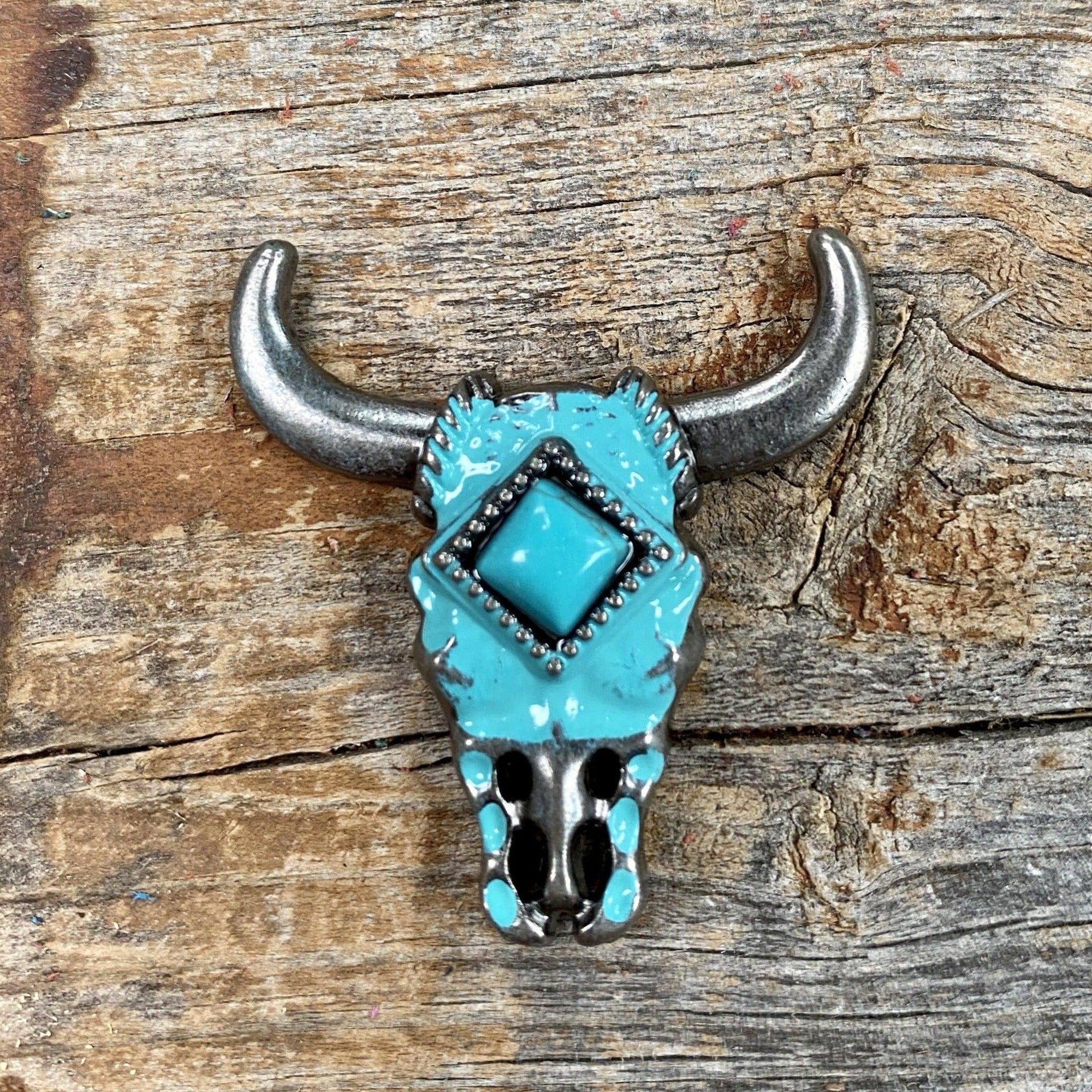 Teal Carnation Flower With Copper Topaz & Pearl 1" Concho
