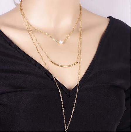Vintage Multiple Layer Pearl & Bar Tassel Necklace