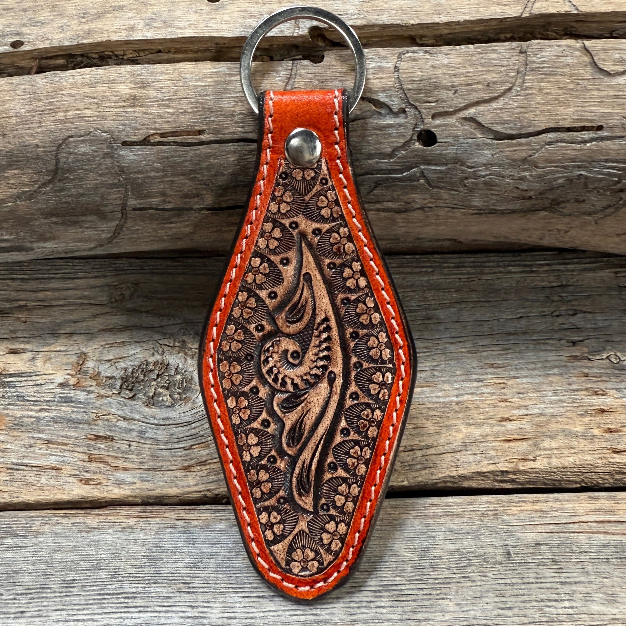 Medium Oil Key Chain with Orange and Jet European Crystal Concho