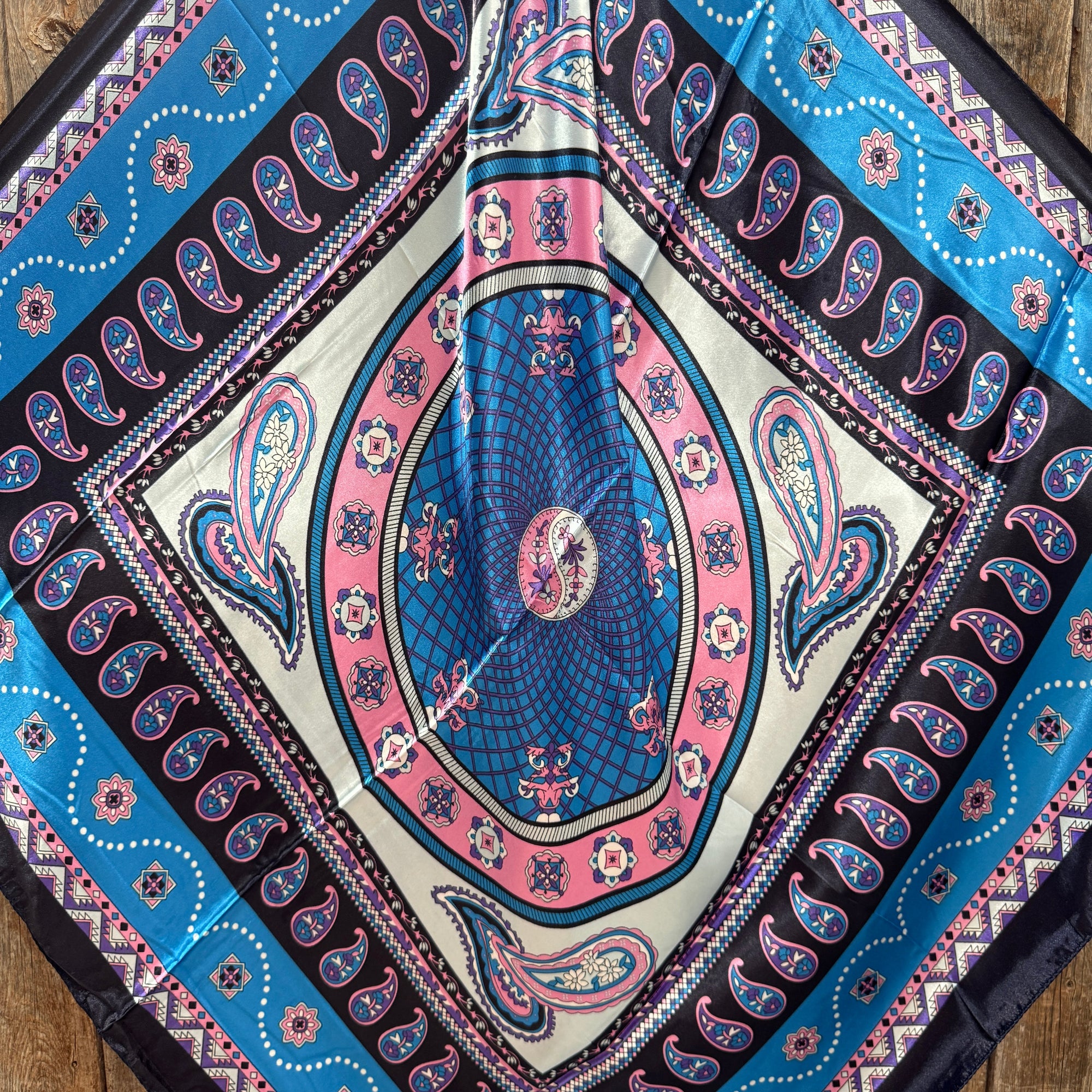 35X35" Blue/Pink/Purple Paisley Wild Rag / Scarf WR3406X