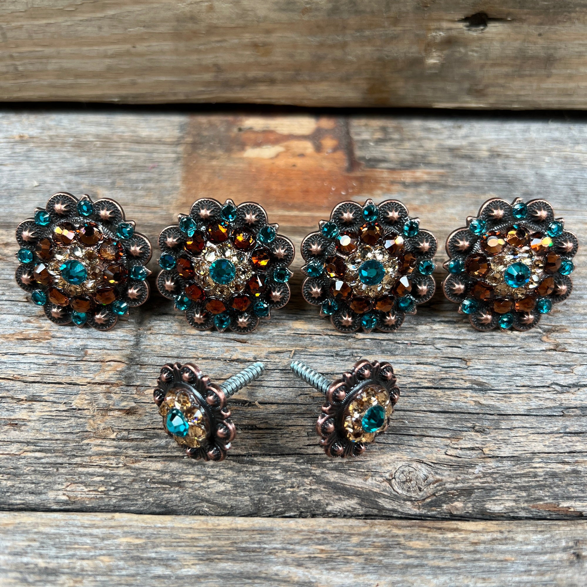 Copper Teal - Champagne - Topaz - Crystal Conchos Sizes from 1"-3" and Buckles