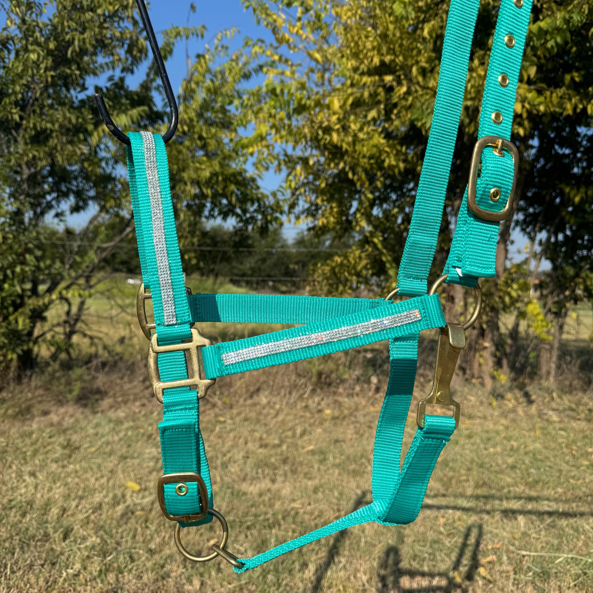 Hunter Green Bling Nylon Horse Halter BNHGRN