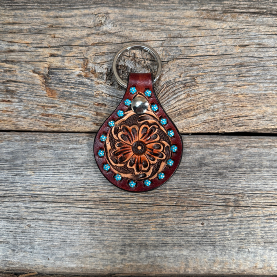 Medium Floral Teal Dot Teal and Champagne One Ear Headstall - Breastcollar Tack Set #OEBC435