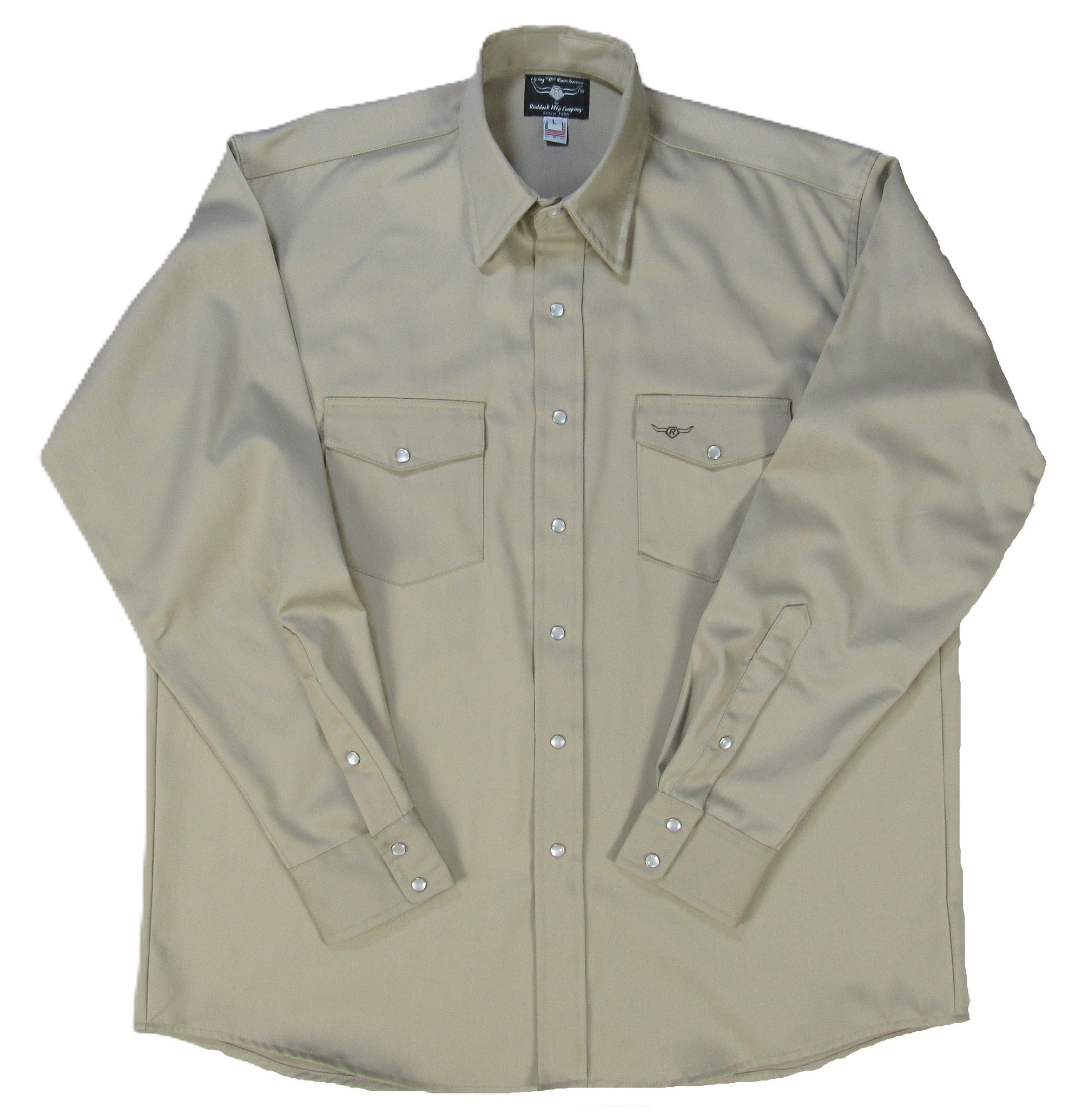 Flying R Ranchwear - Khaki Tan Solid - Long Sleeve - Snaps - Oversized Fit