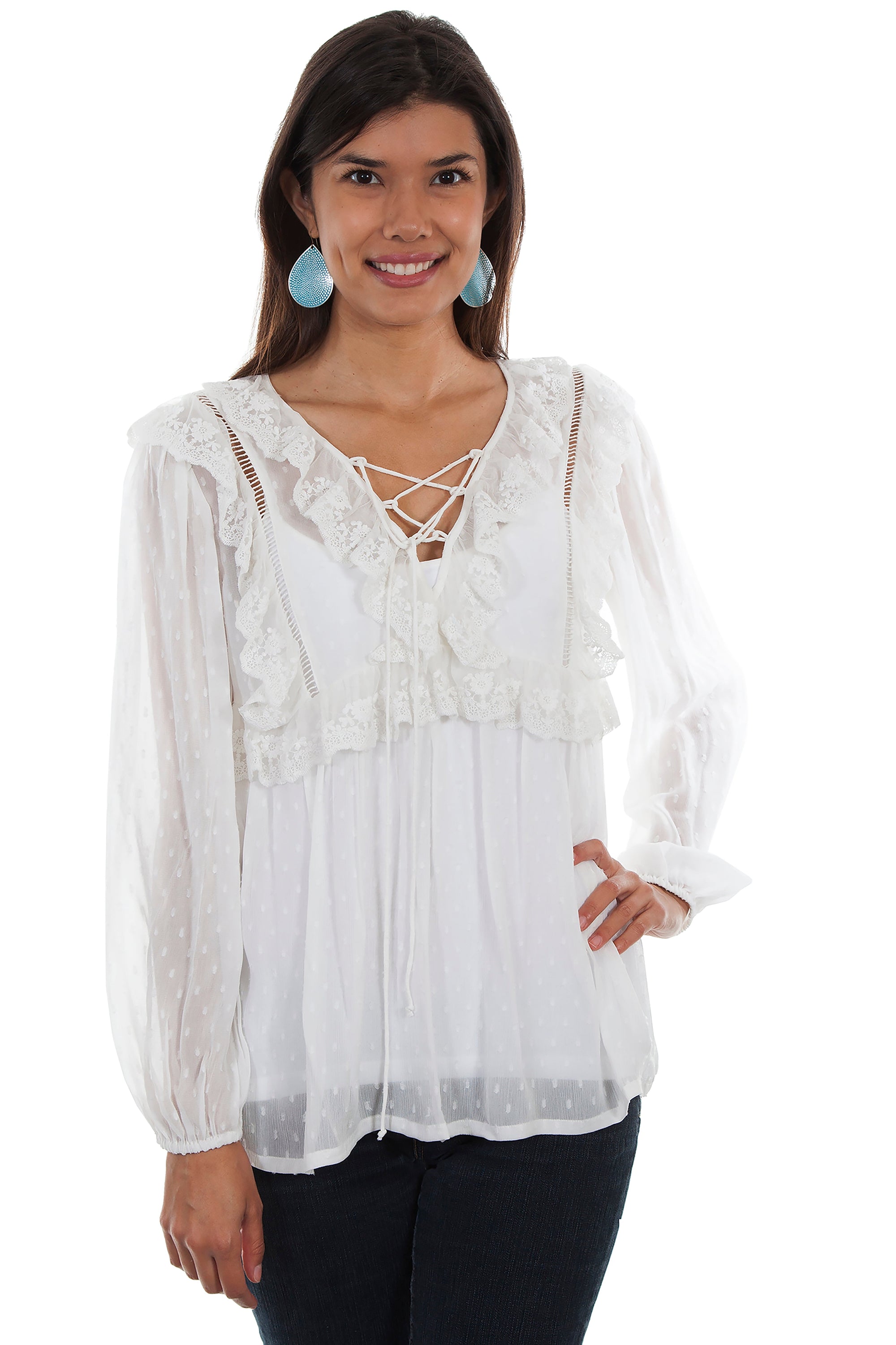 Swiss Dot Blouse W/ruffle Yoke Detai - HC477