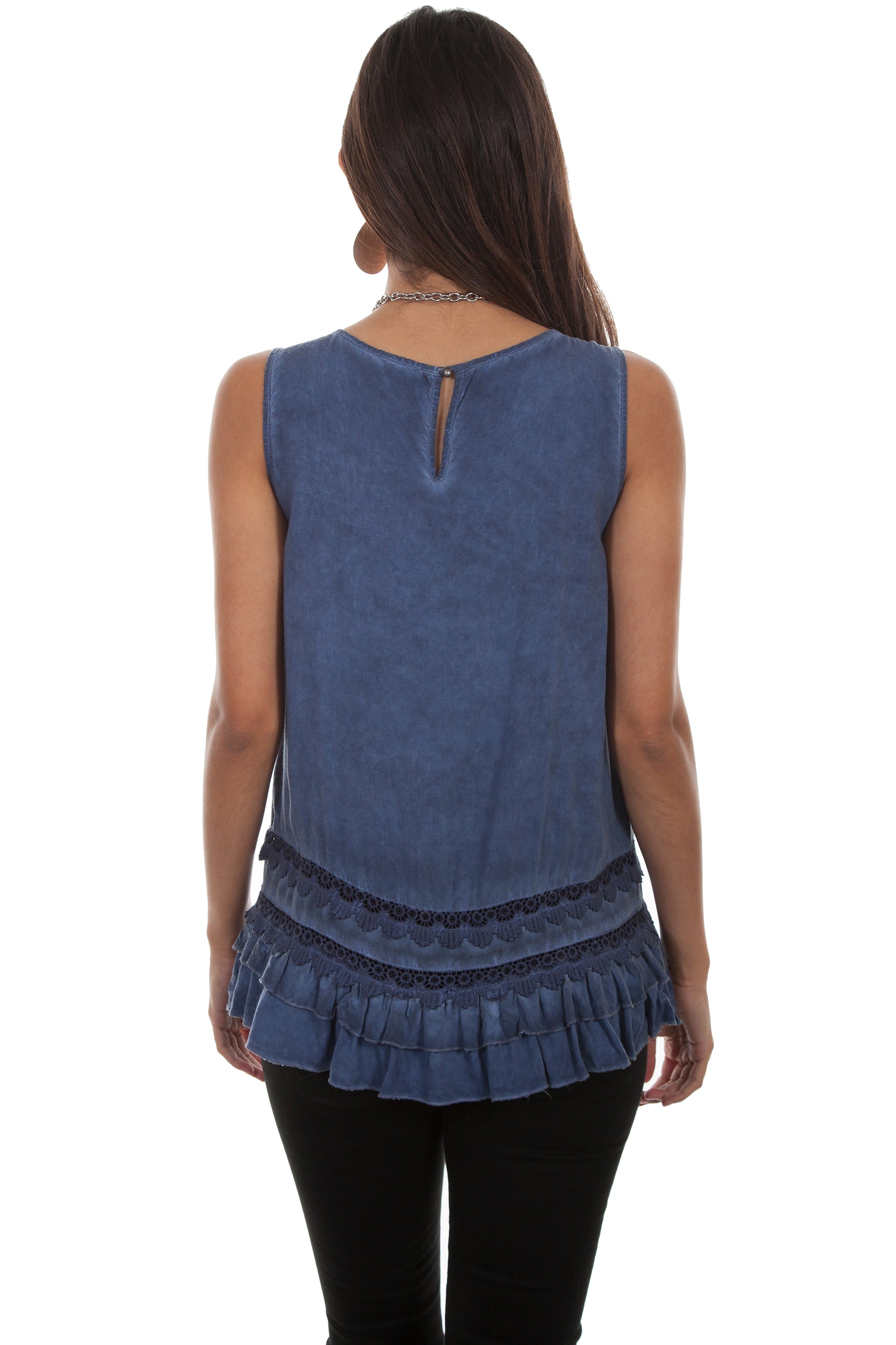 Scoop Neck Tank W/crochet Lace/ruffl - HC486
