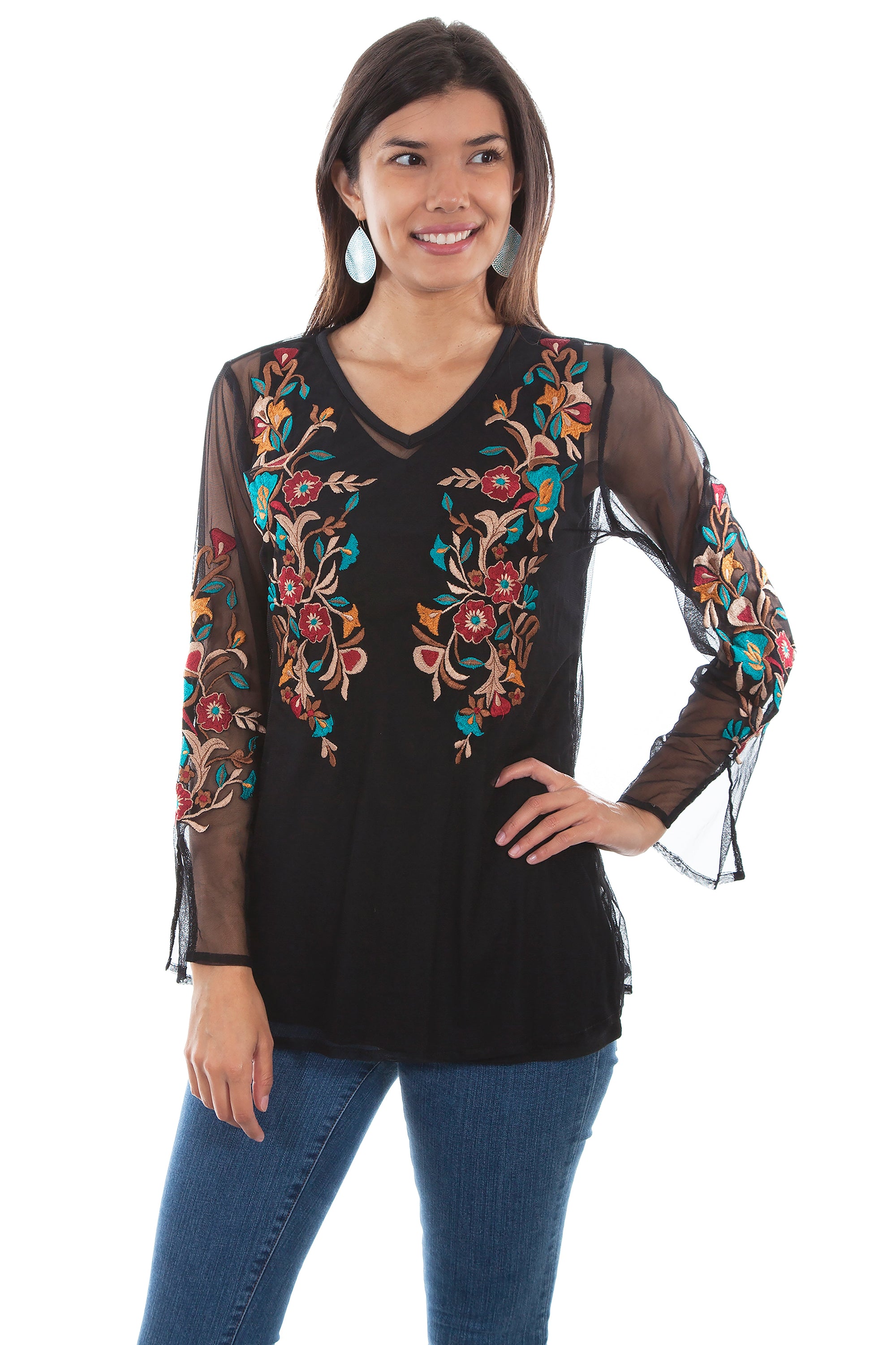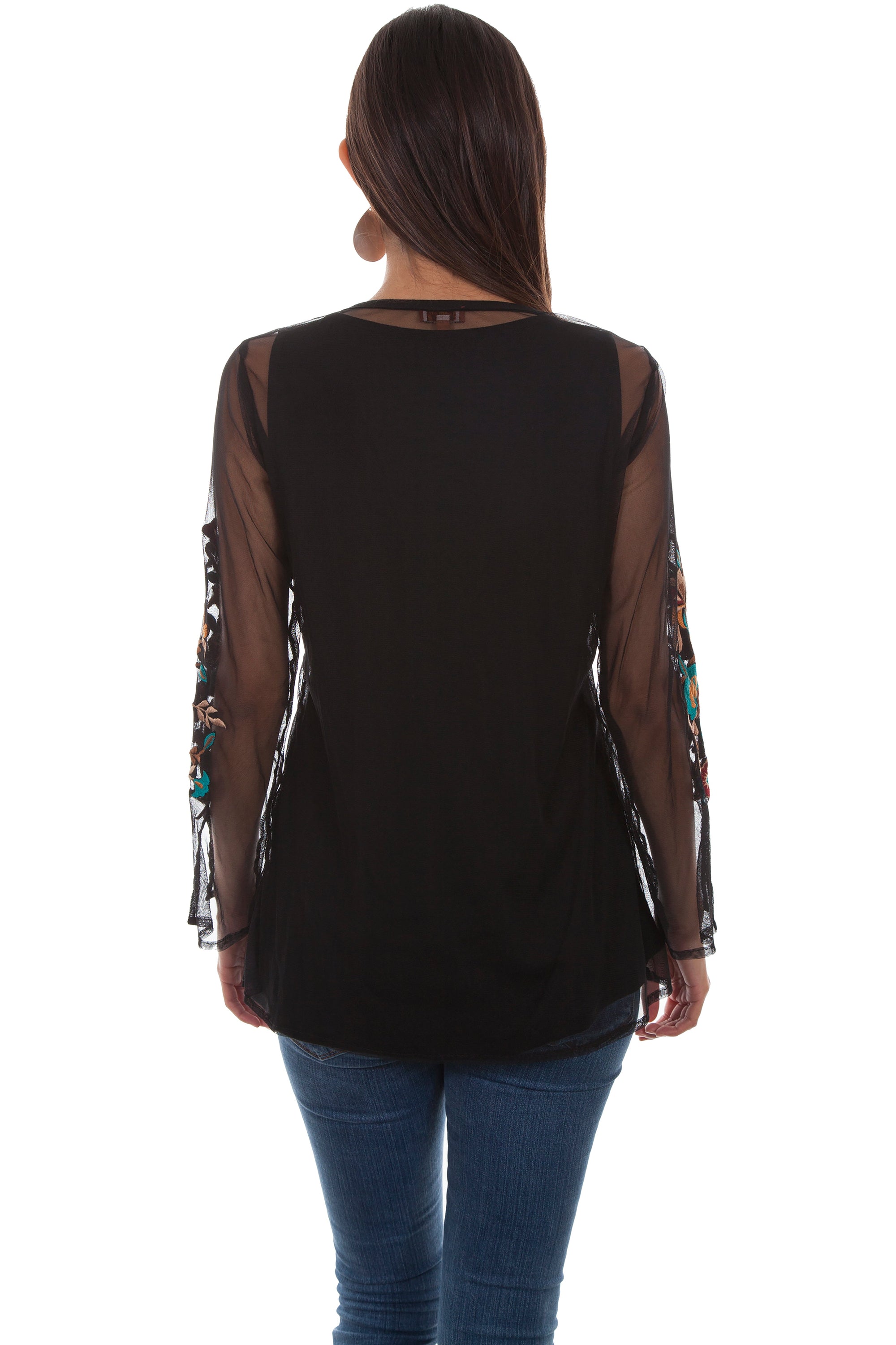 Floral Emb. Mesh Blouse Lined - HC447