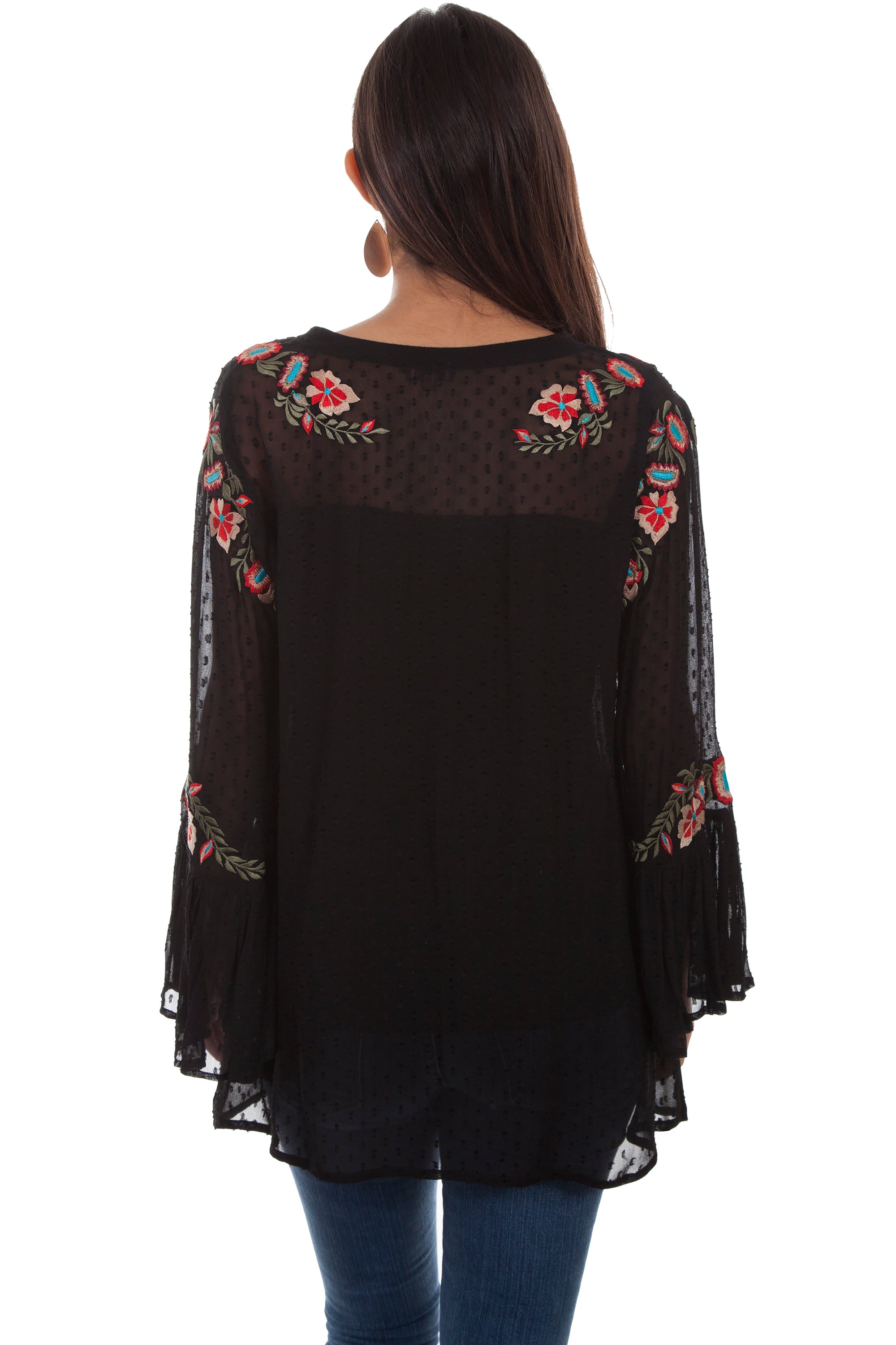 Swiss Dot Tunic W/emb & Ruffle Sleev - HC505