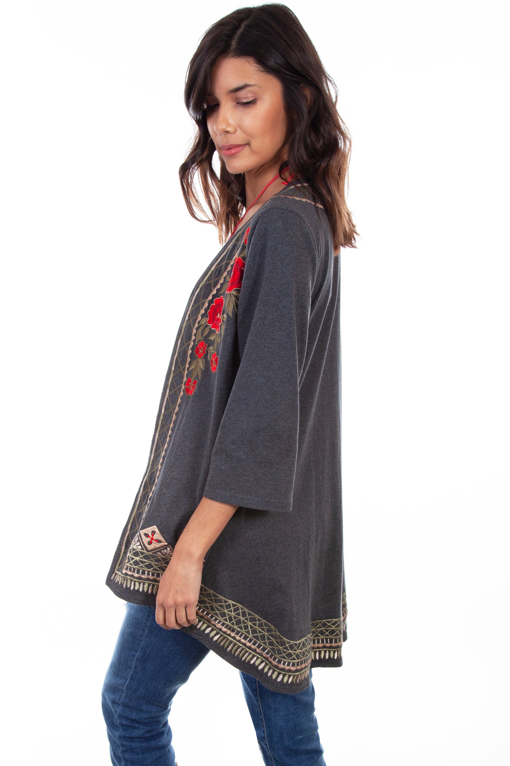 Tunic W/floral Emb Shirt Tail Hem - HC498