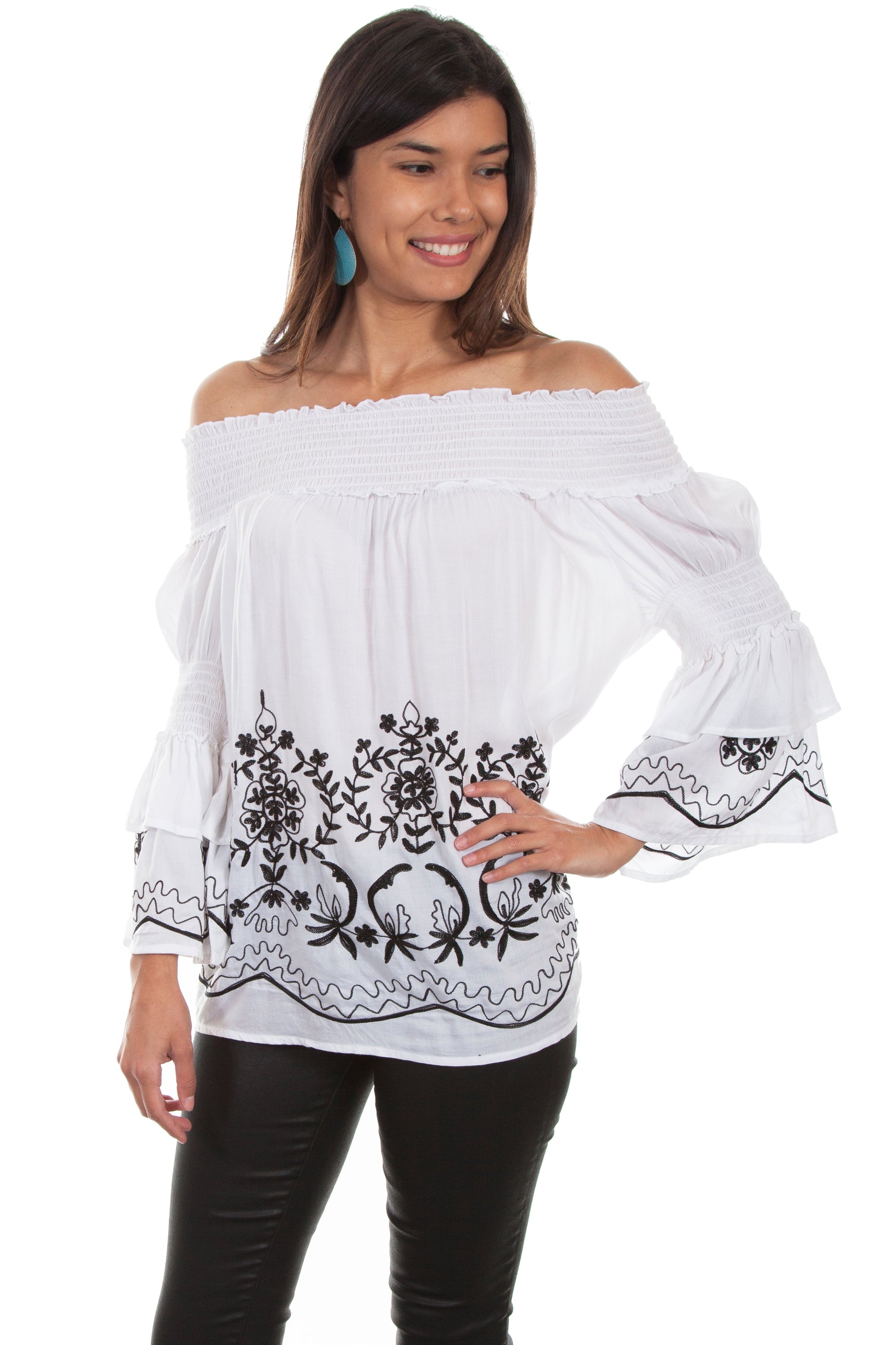 Off Shoulder Emb. Blouse - HC533