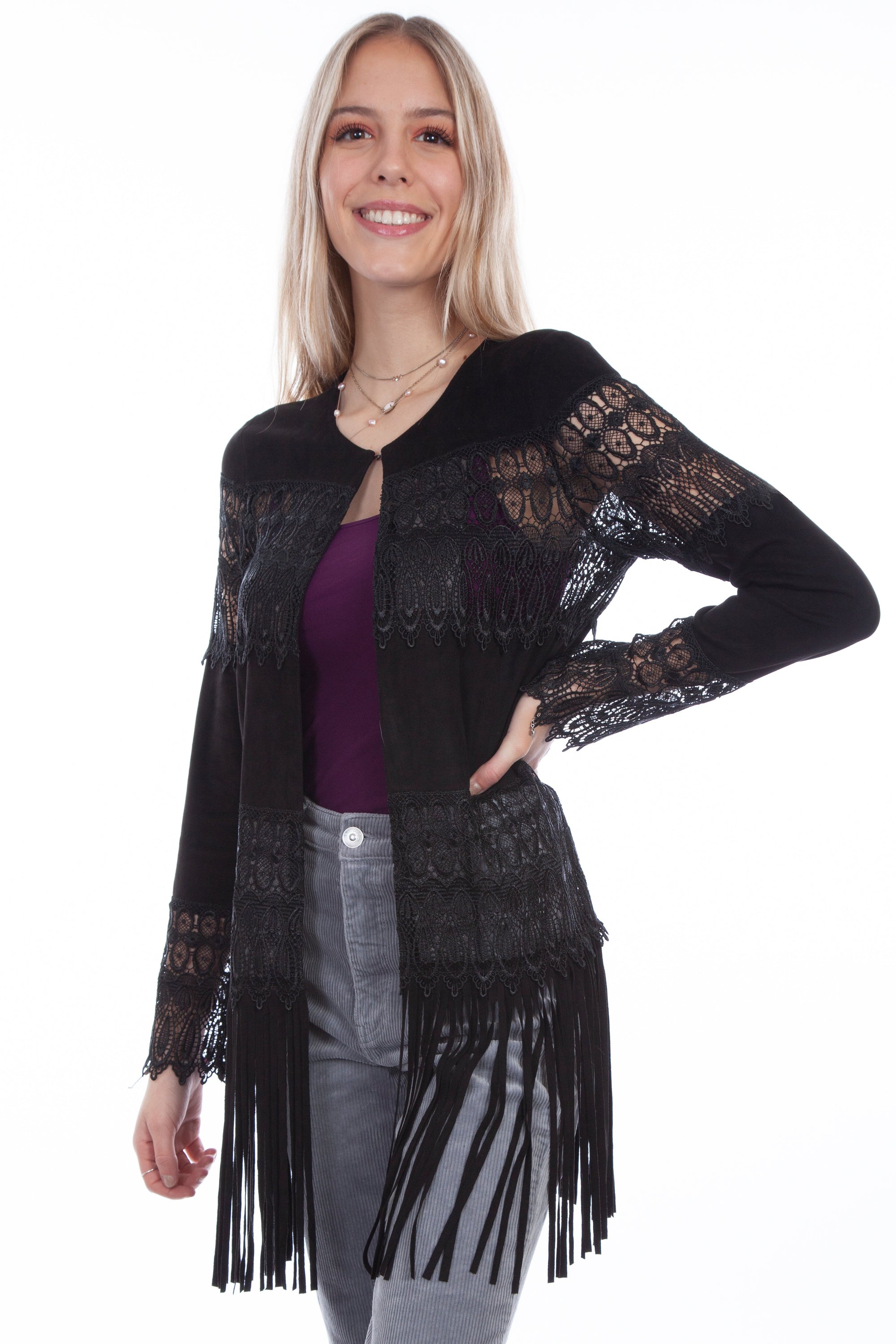 Emb Studded Fringe Jacket - L1073