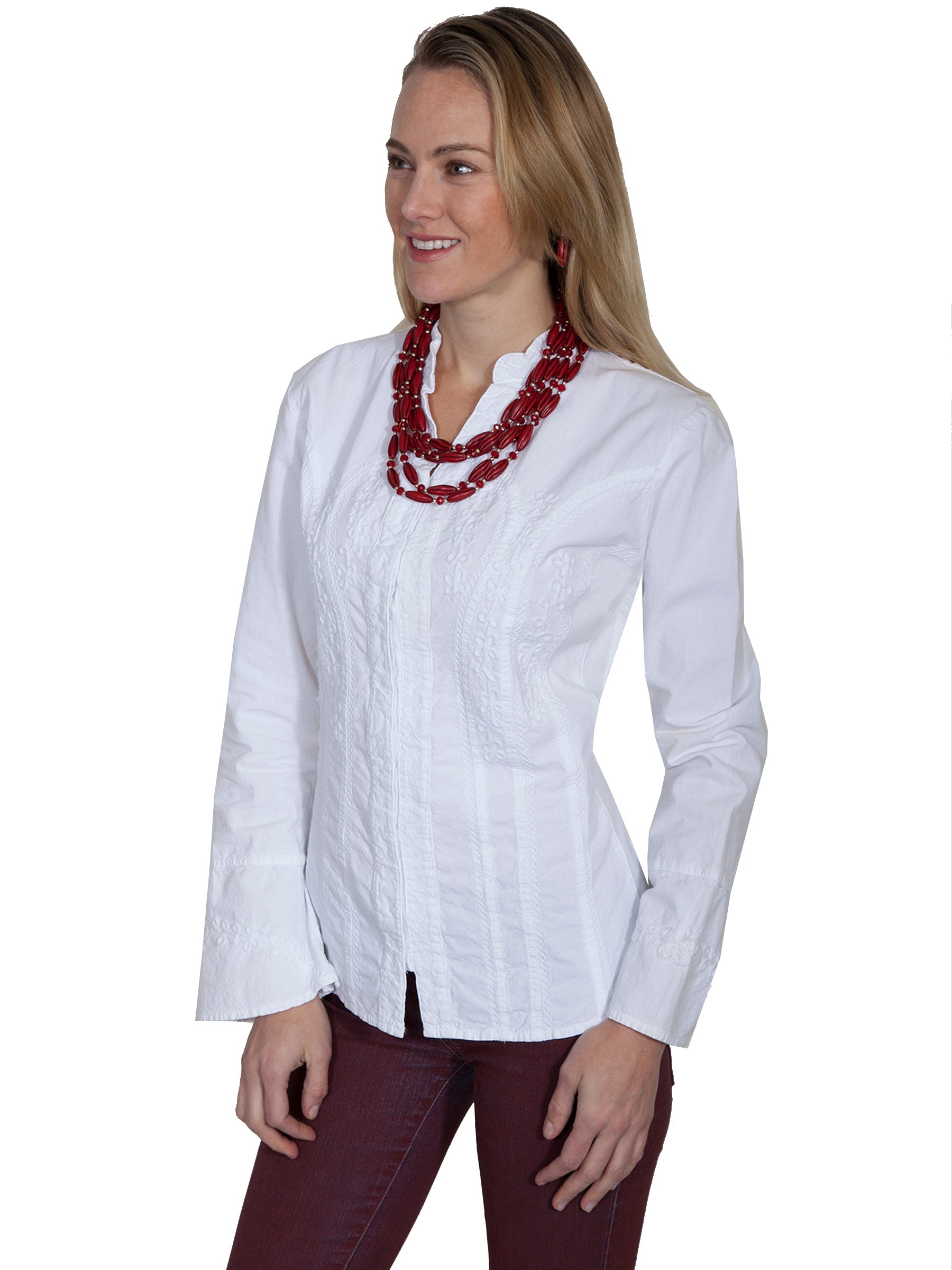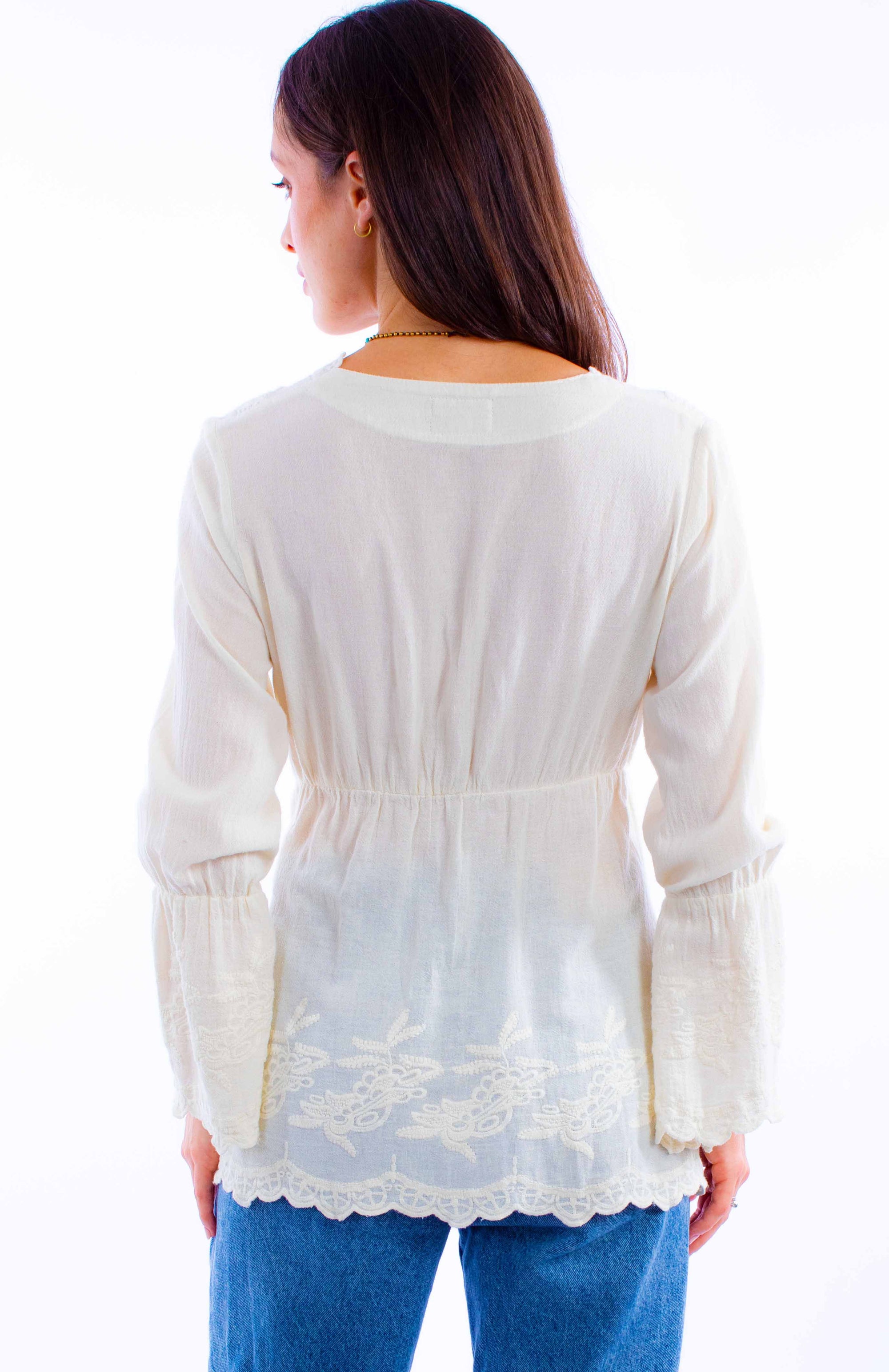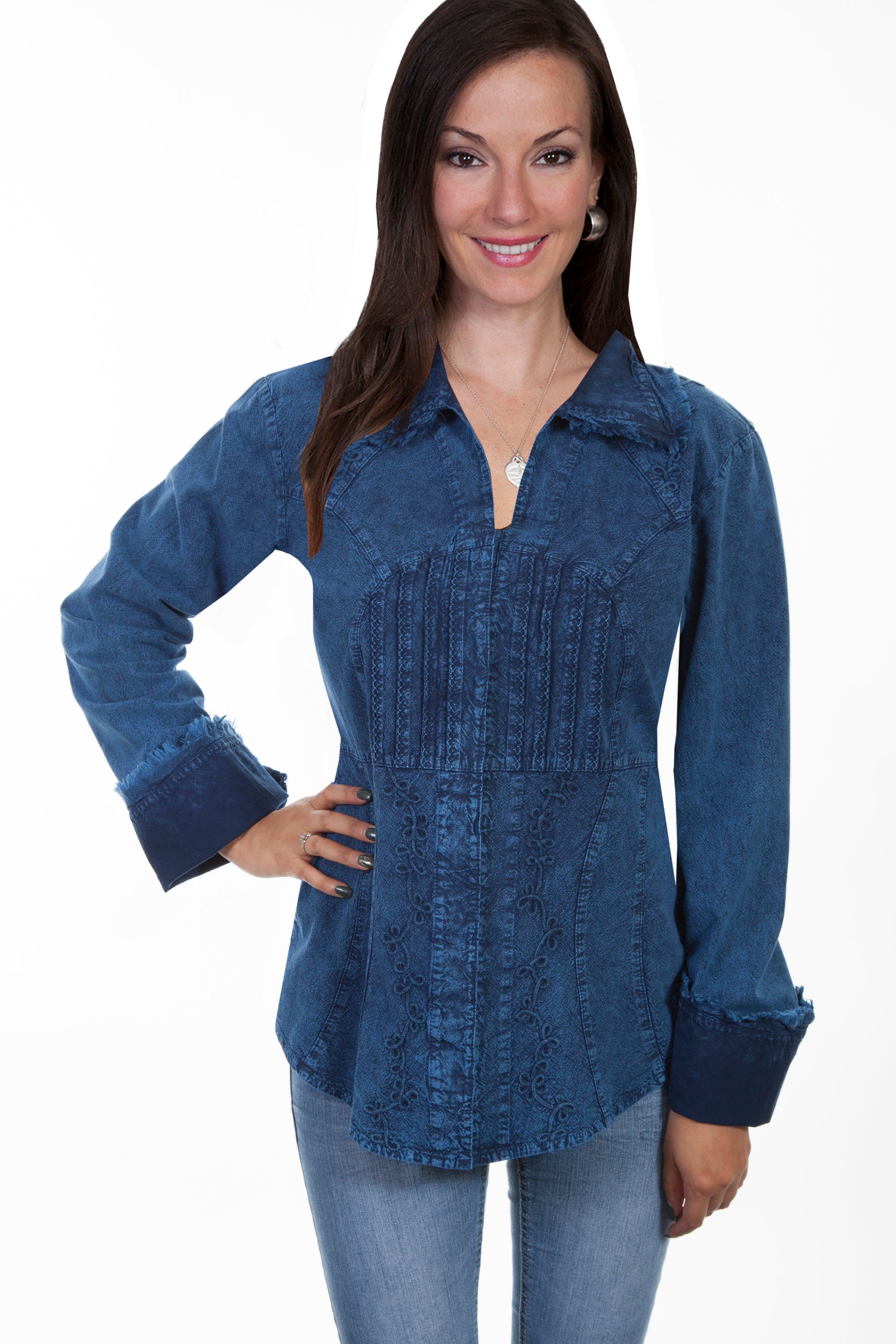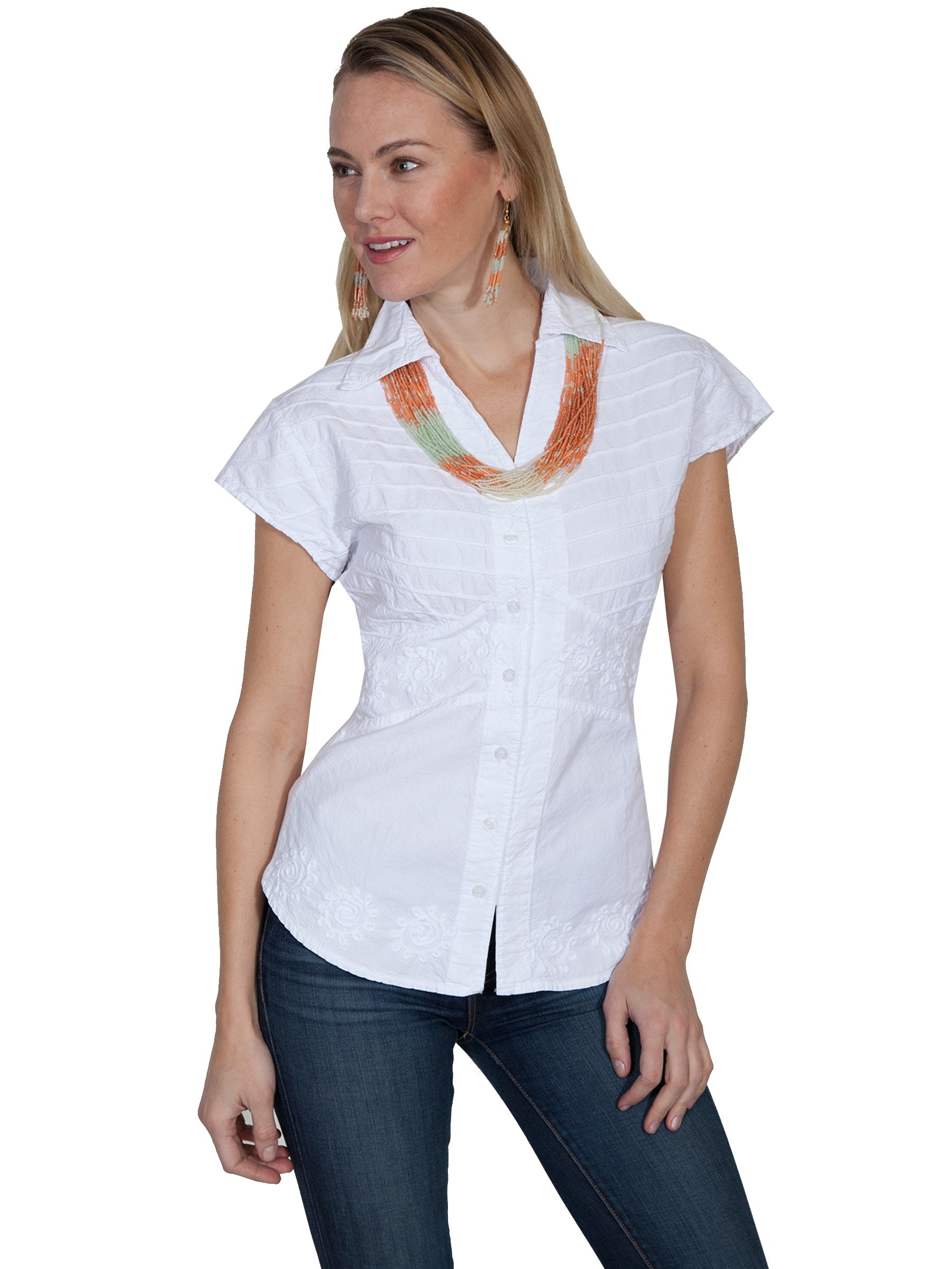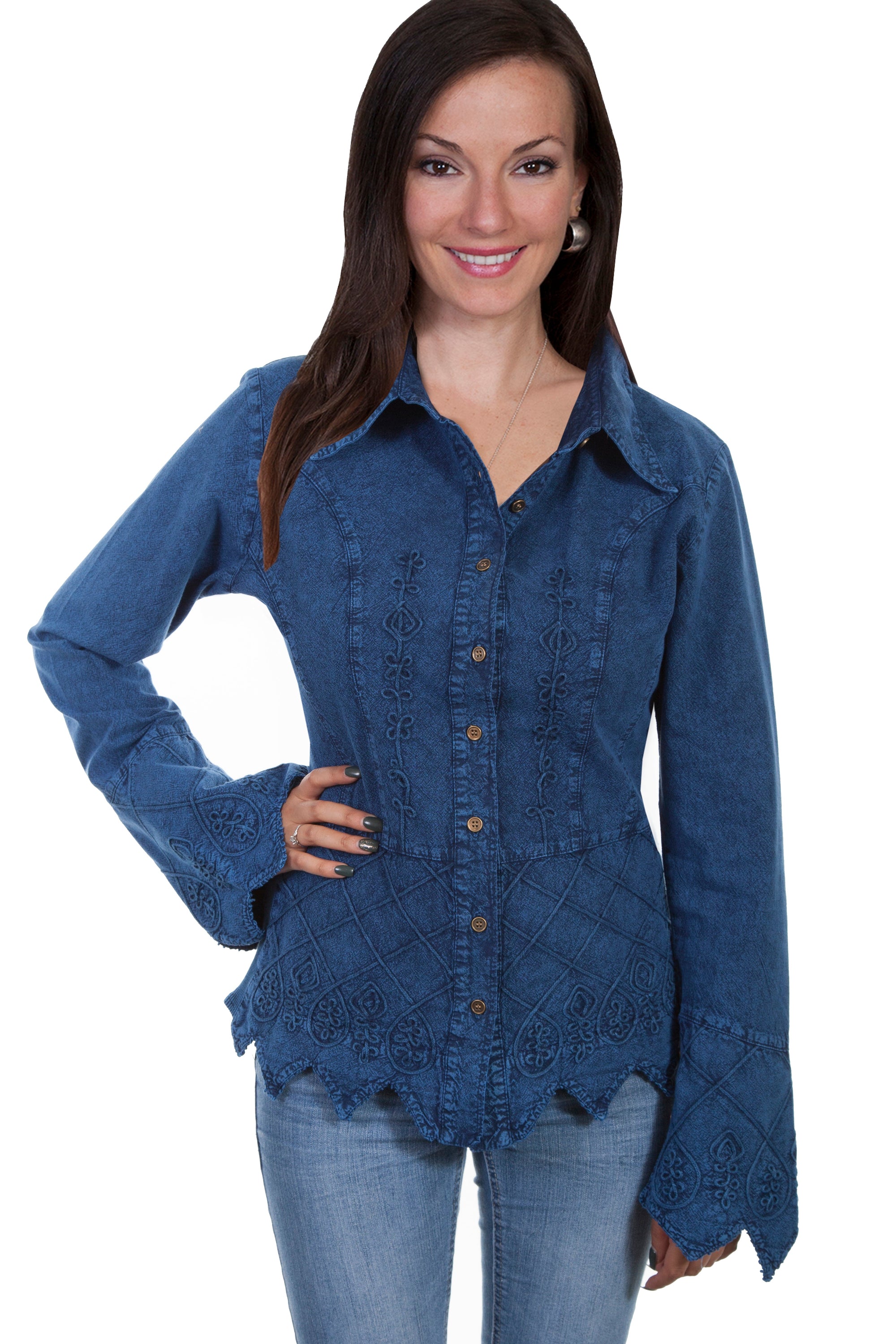 Hi/lo C/s Emb. Button Front Blouse - PSL-246