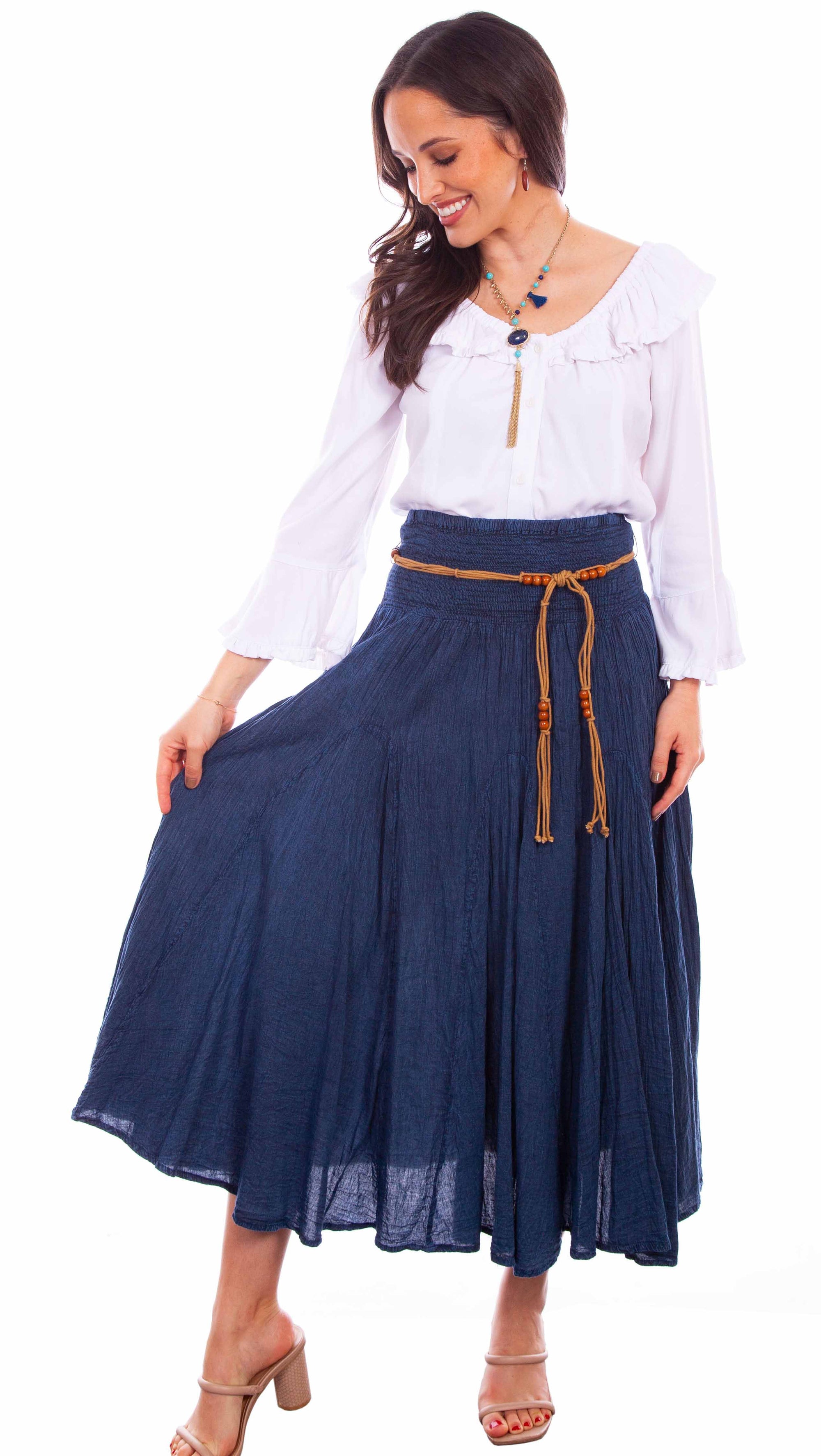 Acid Wash Skirt W/beaded Cord Belt - PSL-136