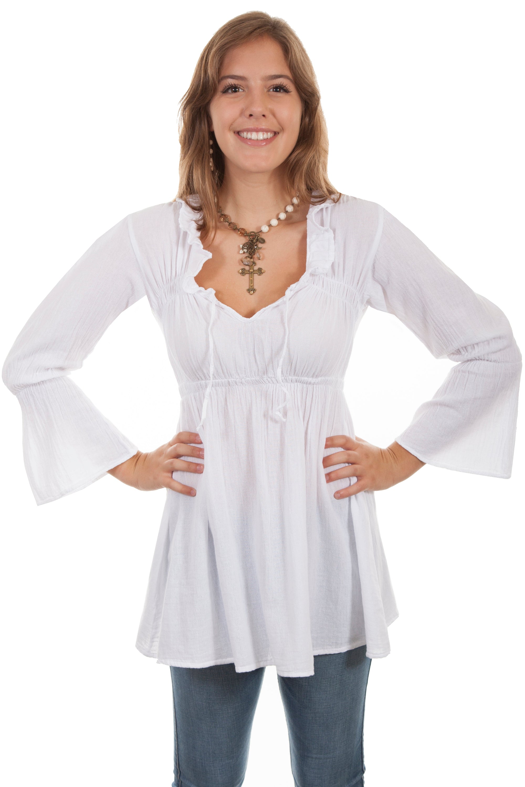 L/s Blouse W/band Collar/bell Cuffs - PSL-187