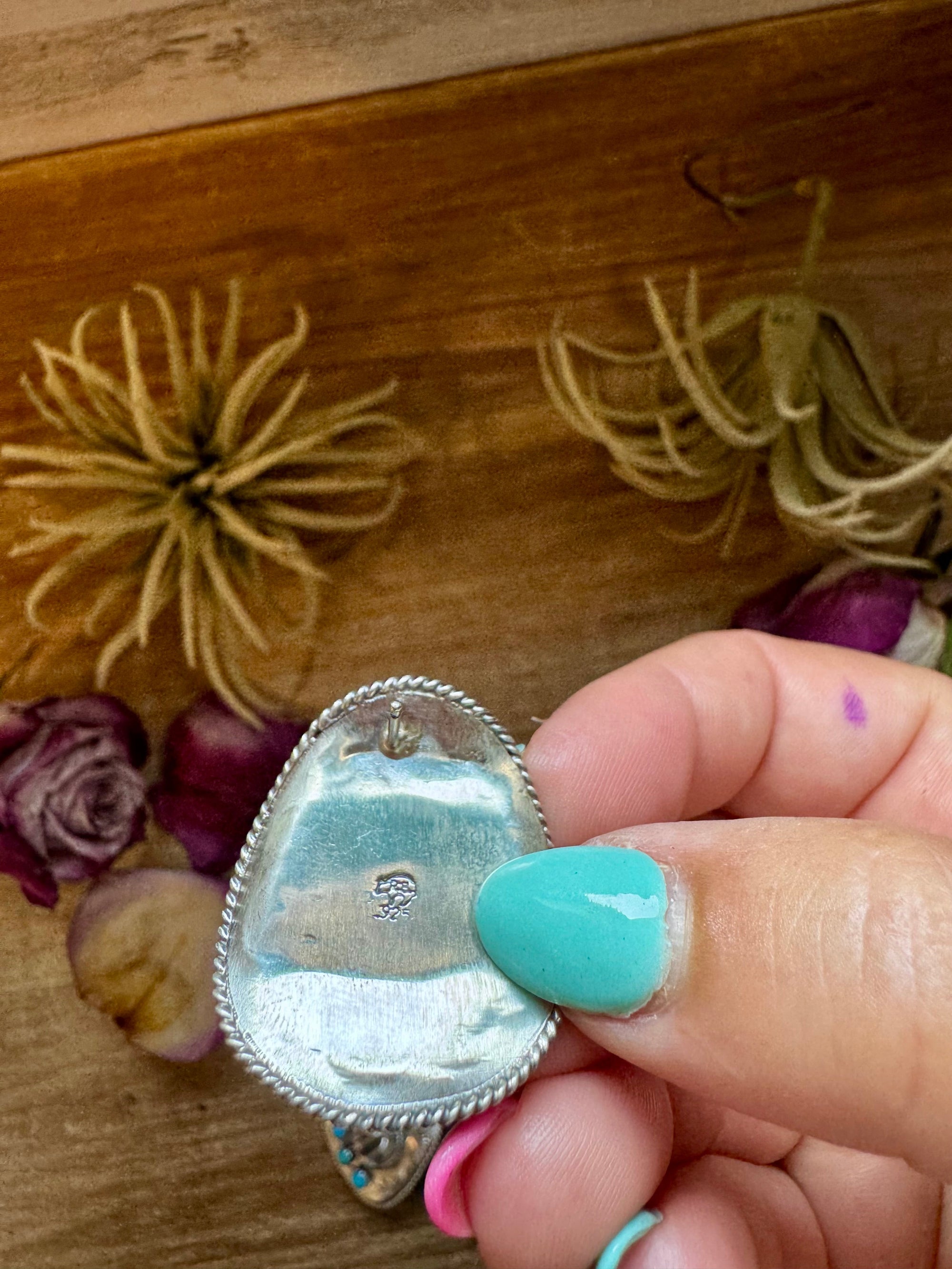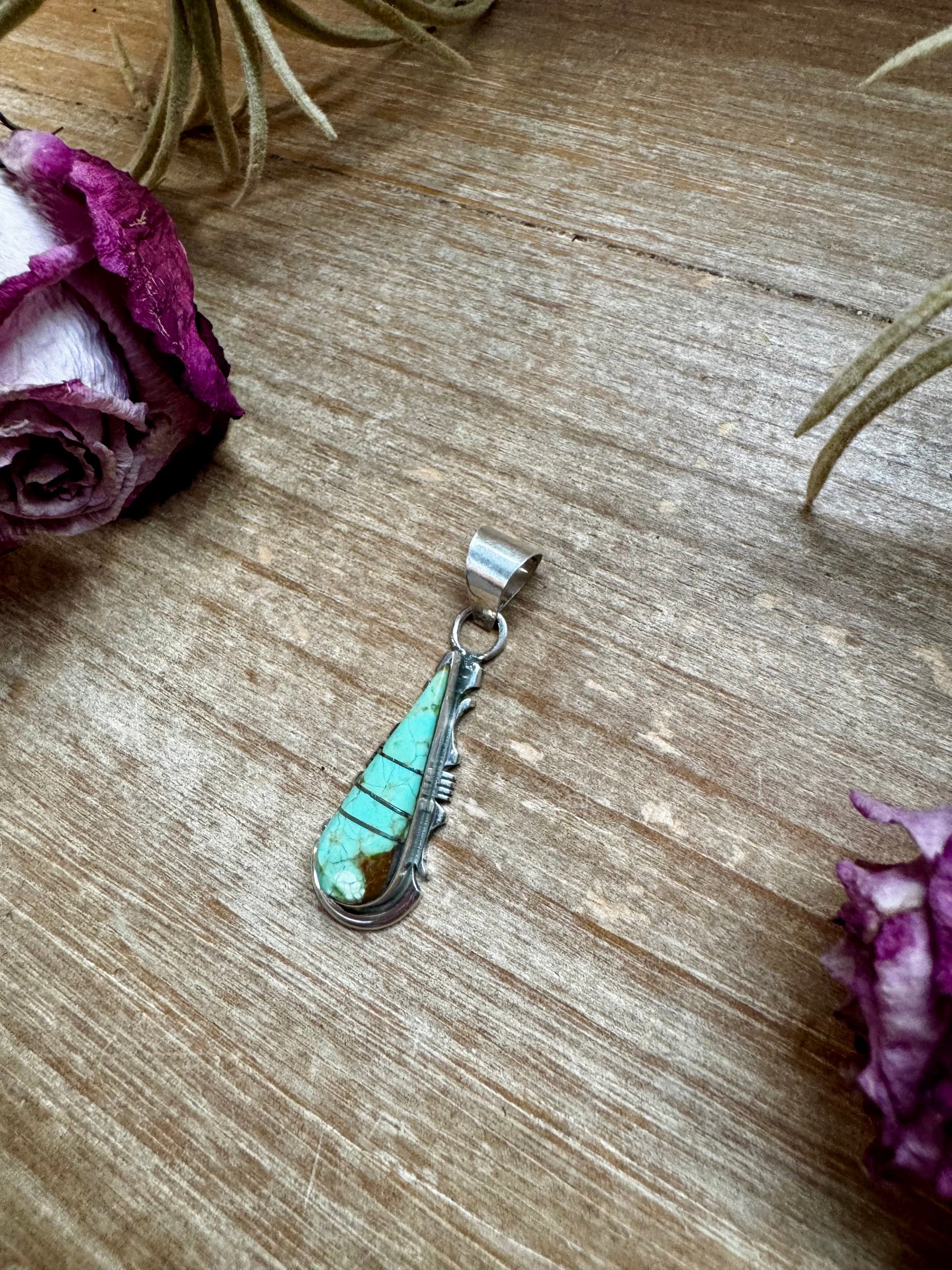 Teardrop Pendant with Kingman Turquoise – Option 3 – Sterling Silver – Native Made by SF – Fits 5mm