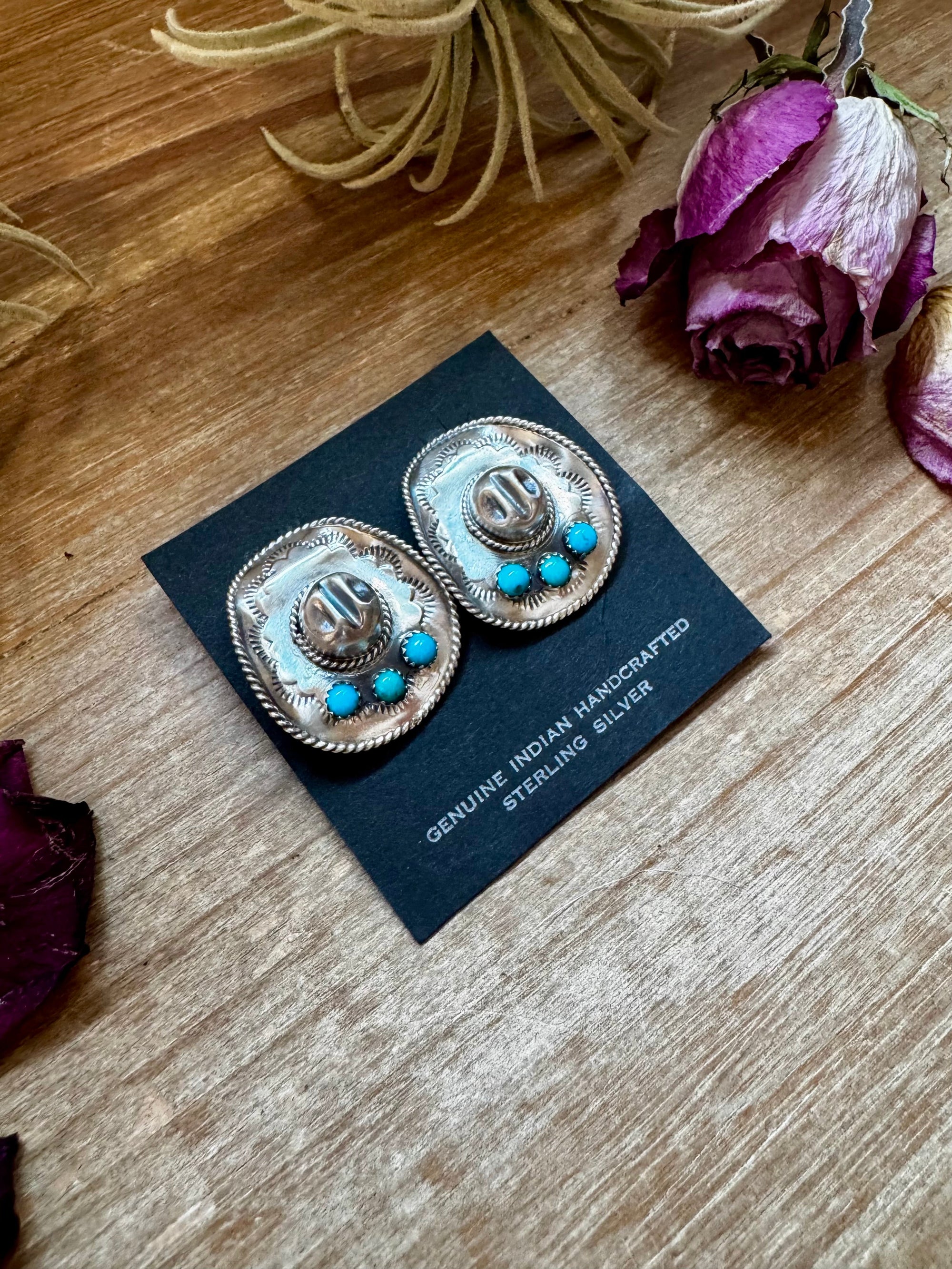 Cowboy Hat Stud Earrings with Kingman Turquoise – Sterling Silver – Native Made by Bobby Platero