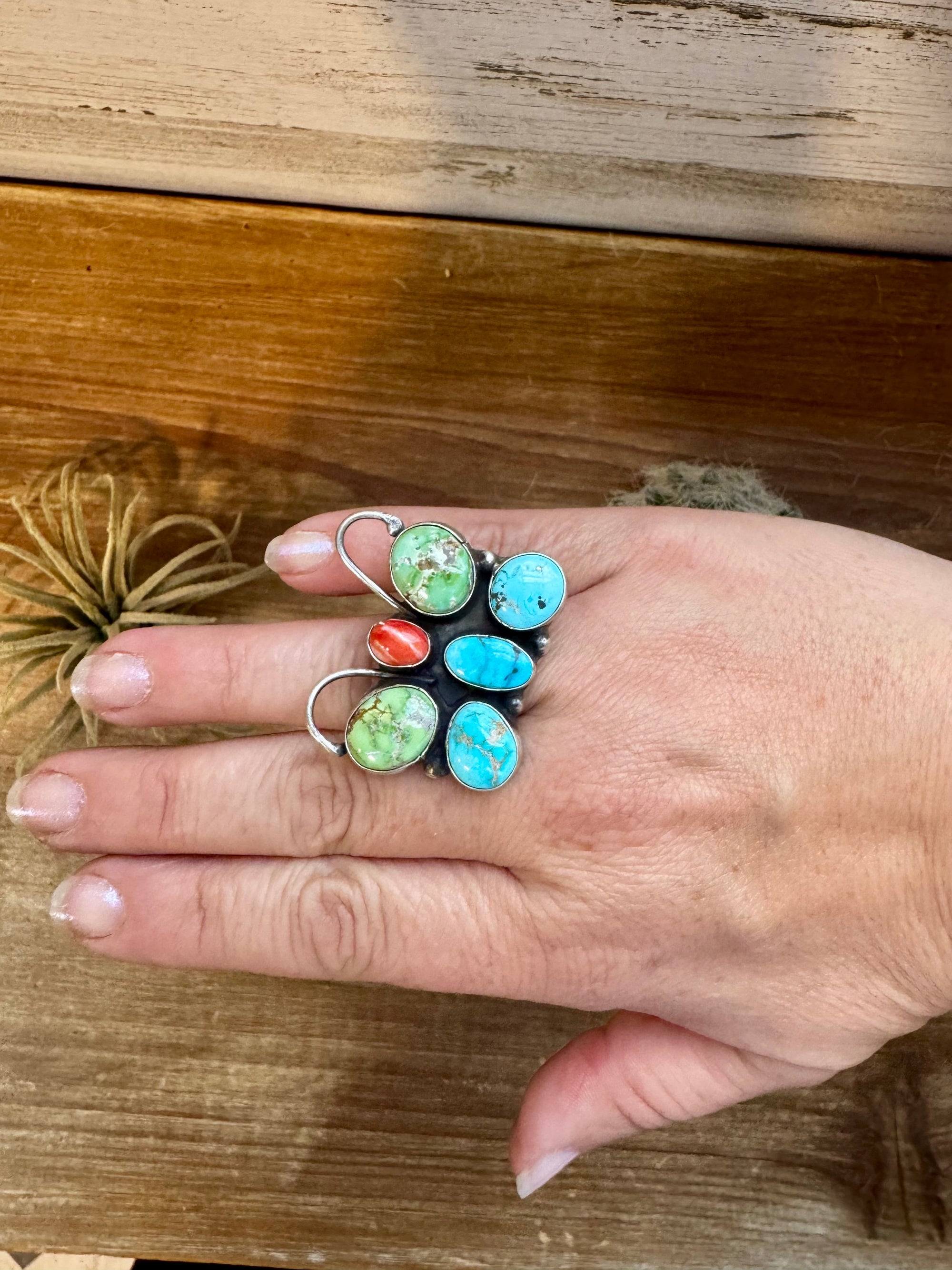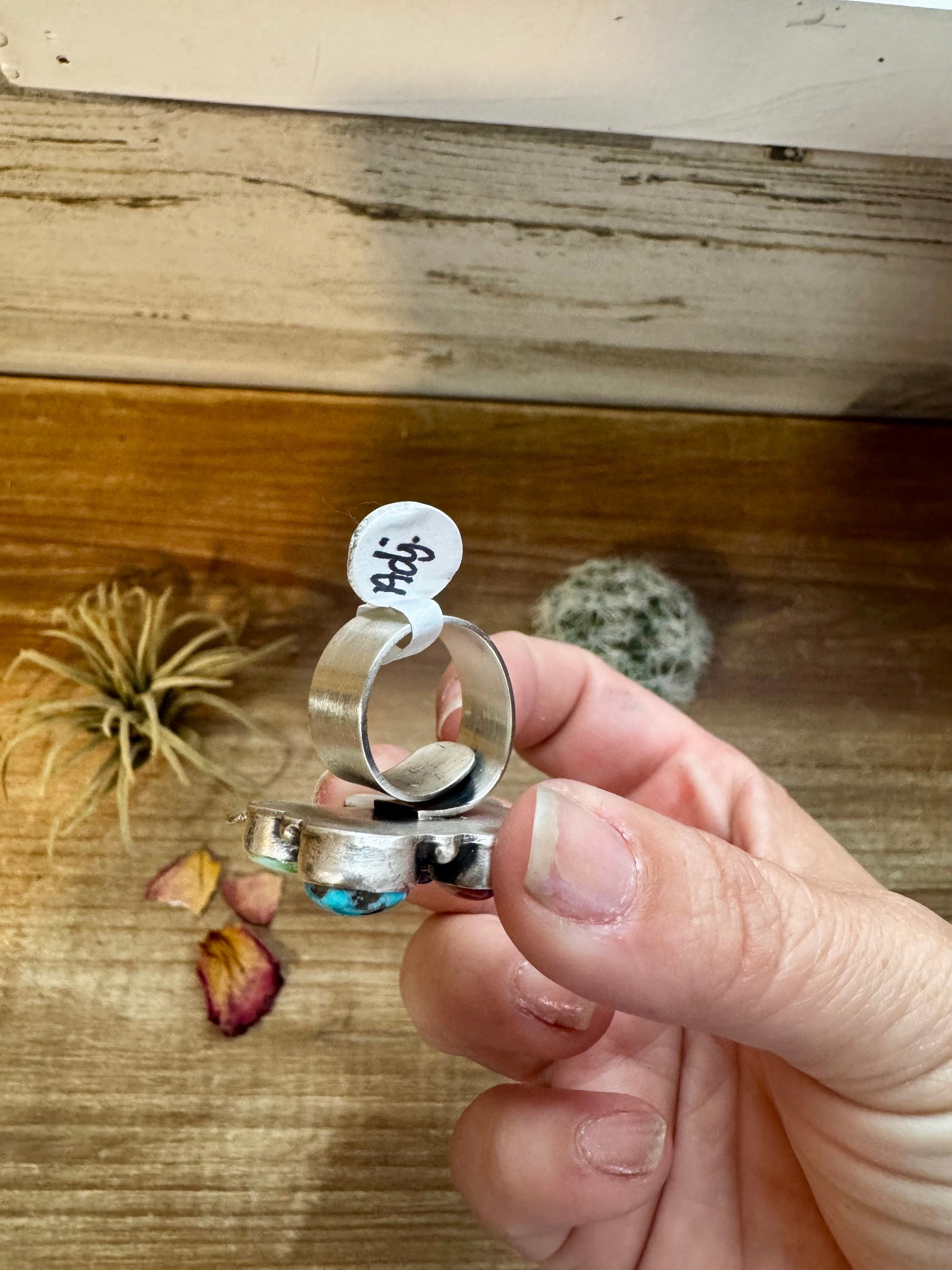Adjustable Rectangle Ring with 21 Kingman Turquoise – Sterling Silver