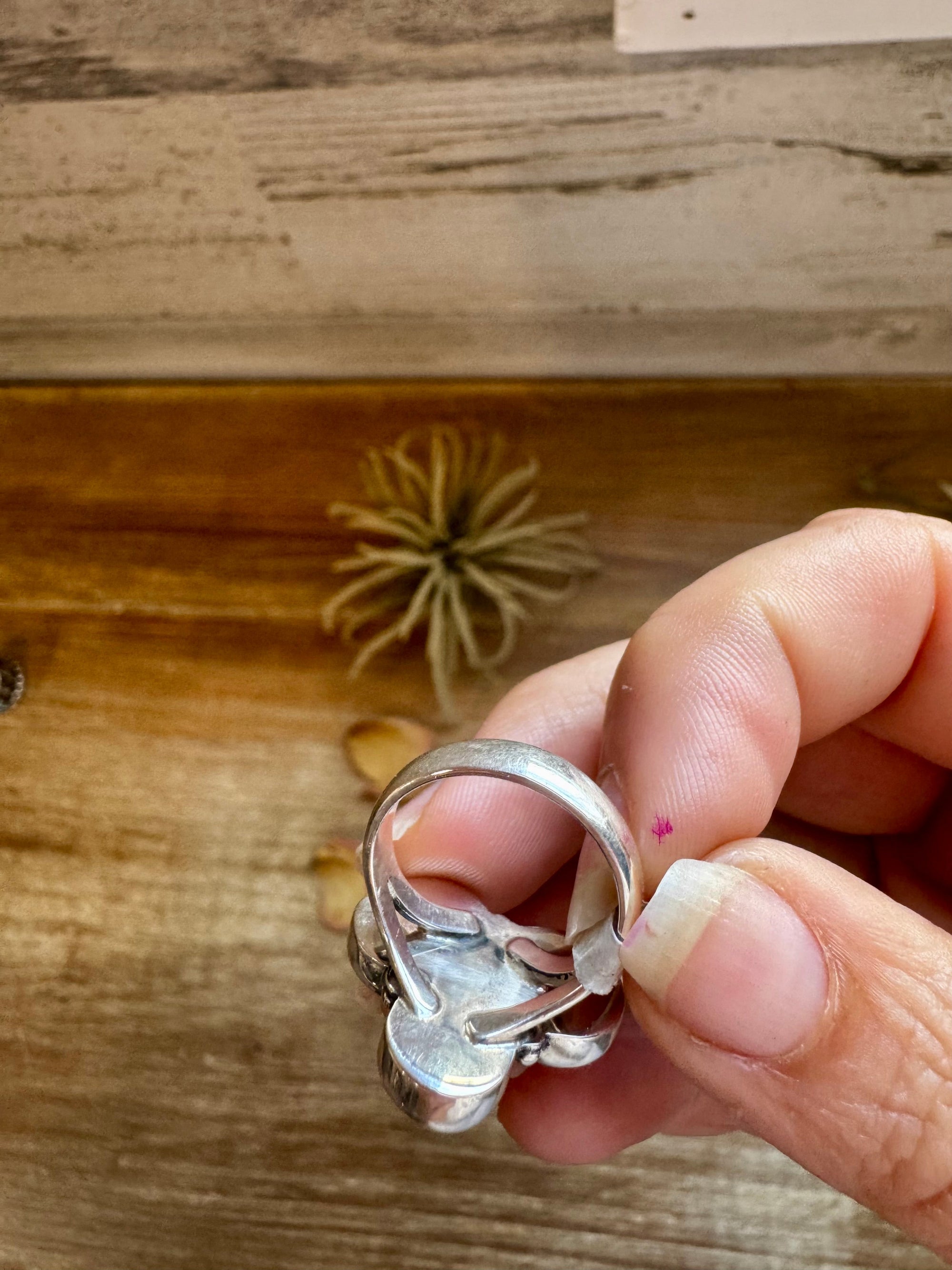 Turquoise Ring – Kingman Turquoise – Sterling Silver – Size 8 – TB Stamp by Tamara Benally, Navajo Artist