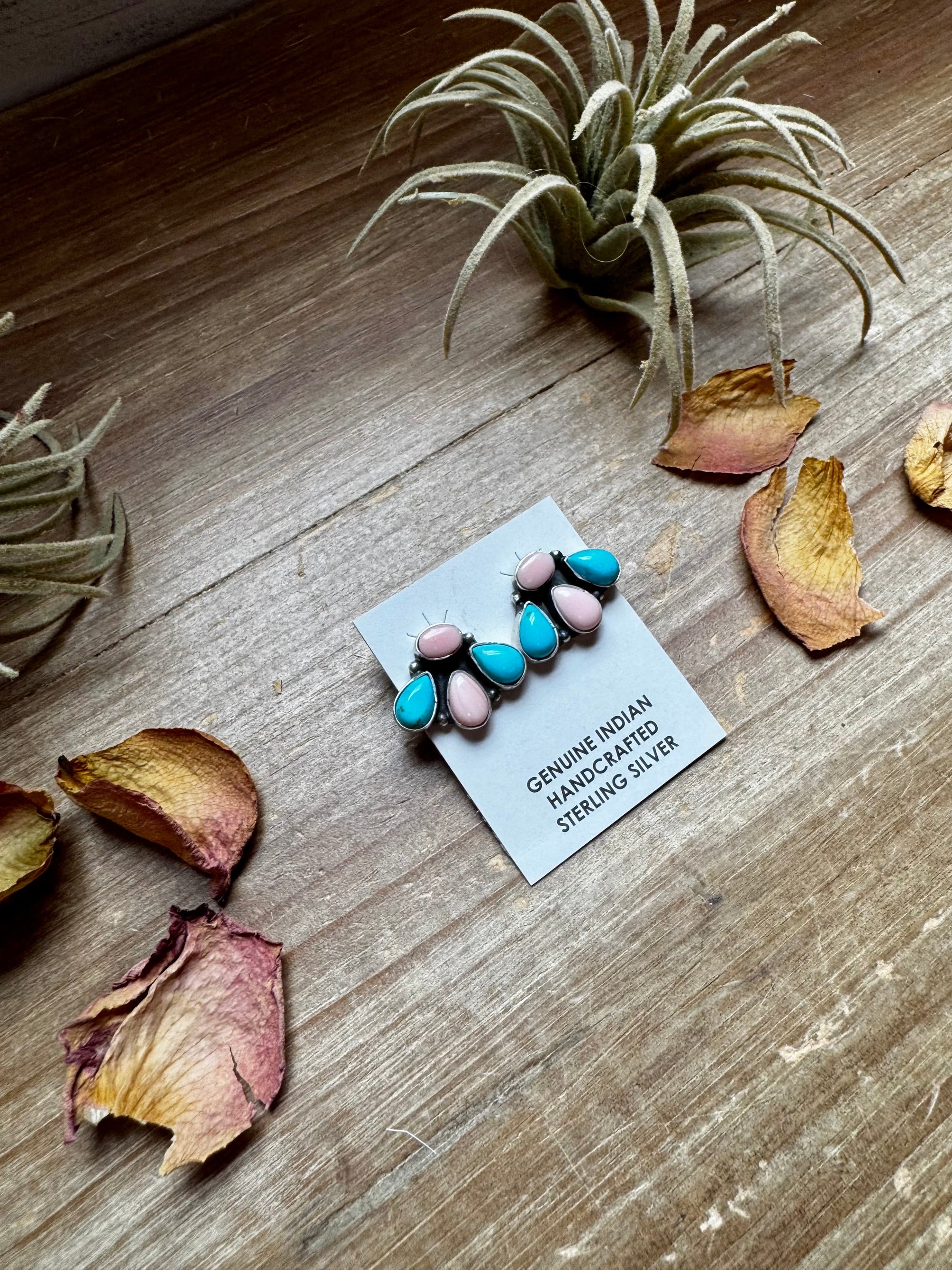 Stud Earrings – Kingman Turquoise & Pink Conch (Stamped Marcella James)