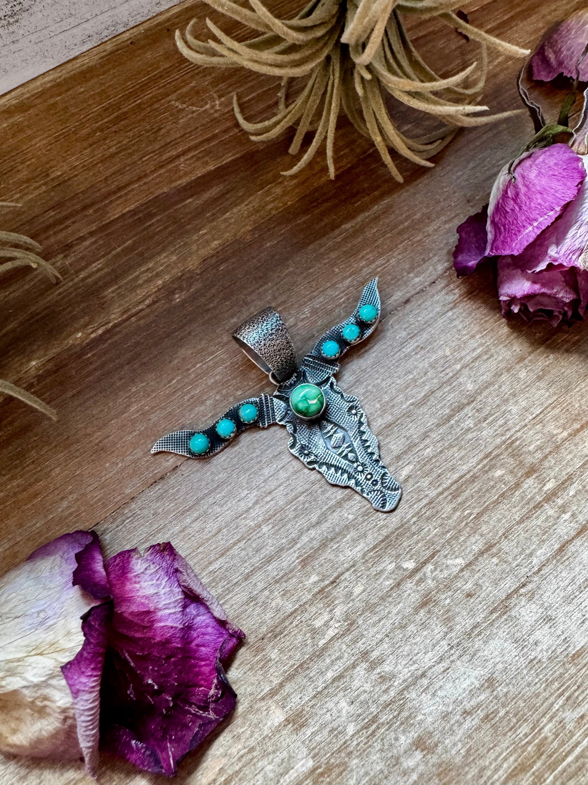Longhorn Pendant with Gold Accent – Sterling Silver – Native Made by Leroy James