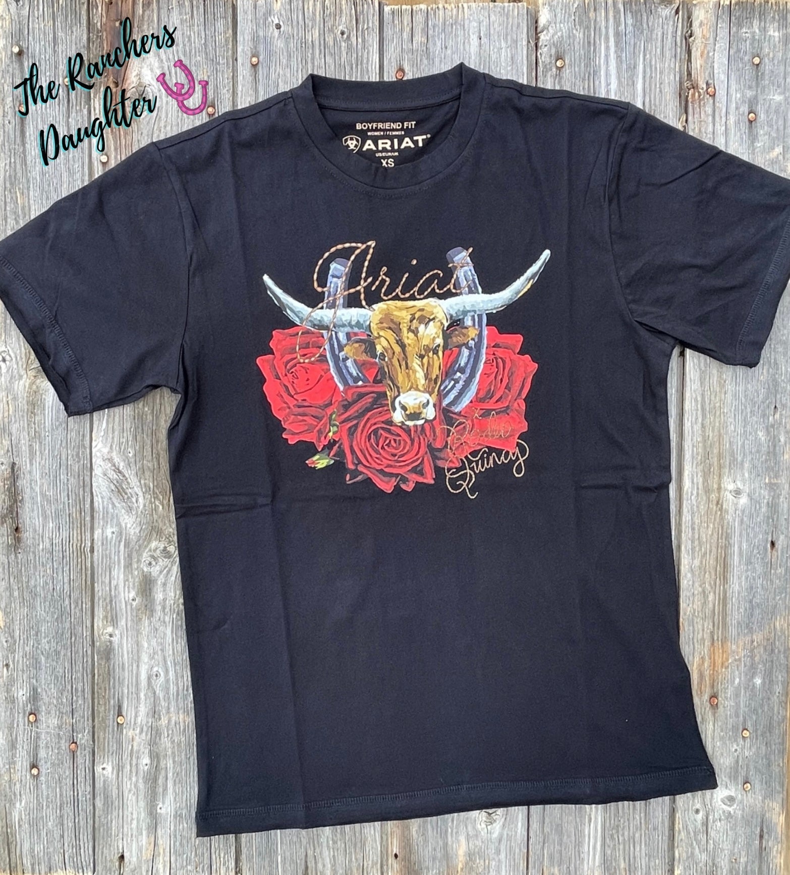 Ariat Girls Cactus Rose Tee - Heather Grey