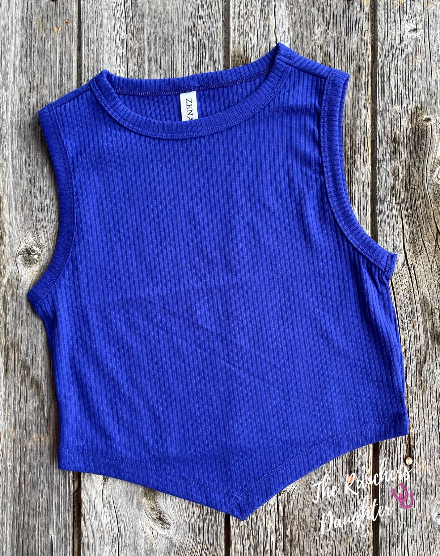 Hot Pink Ribbed Crop Tank with Reversible Neckline