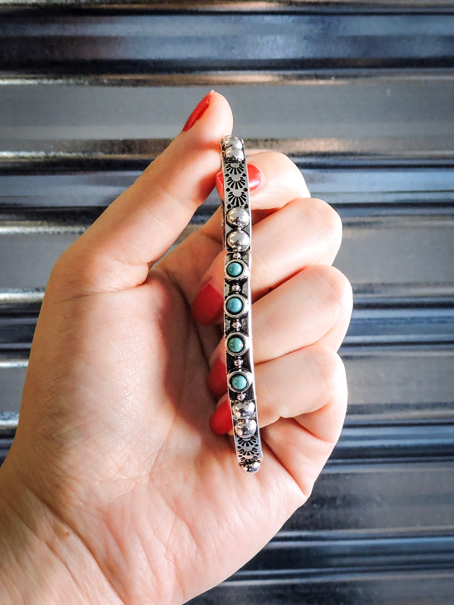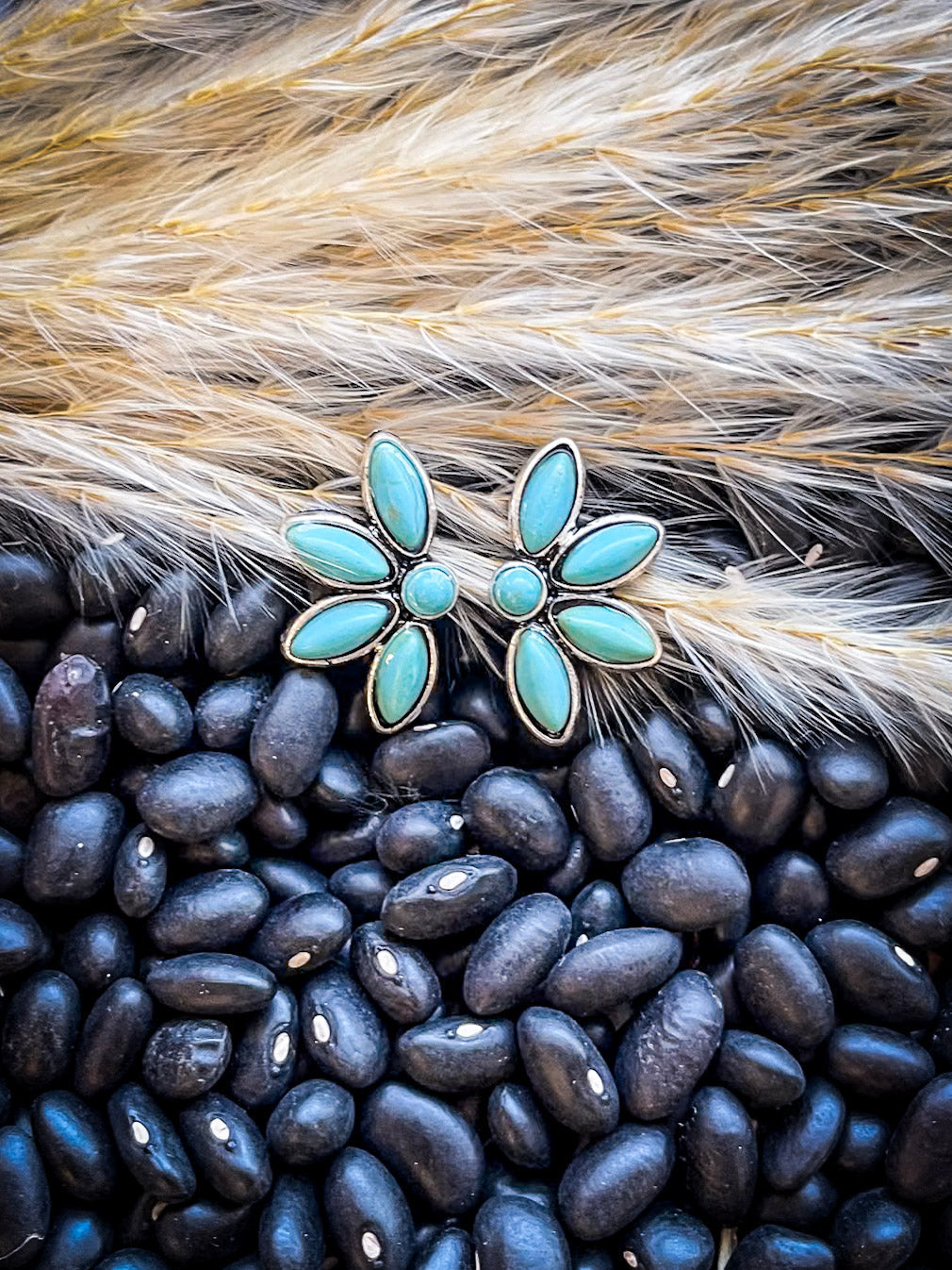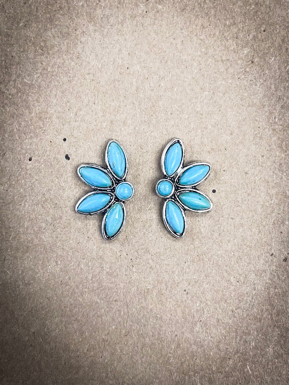 Nova Stud Hoop Fashion Earring - Silver/Turquoise
