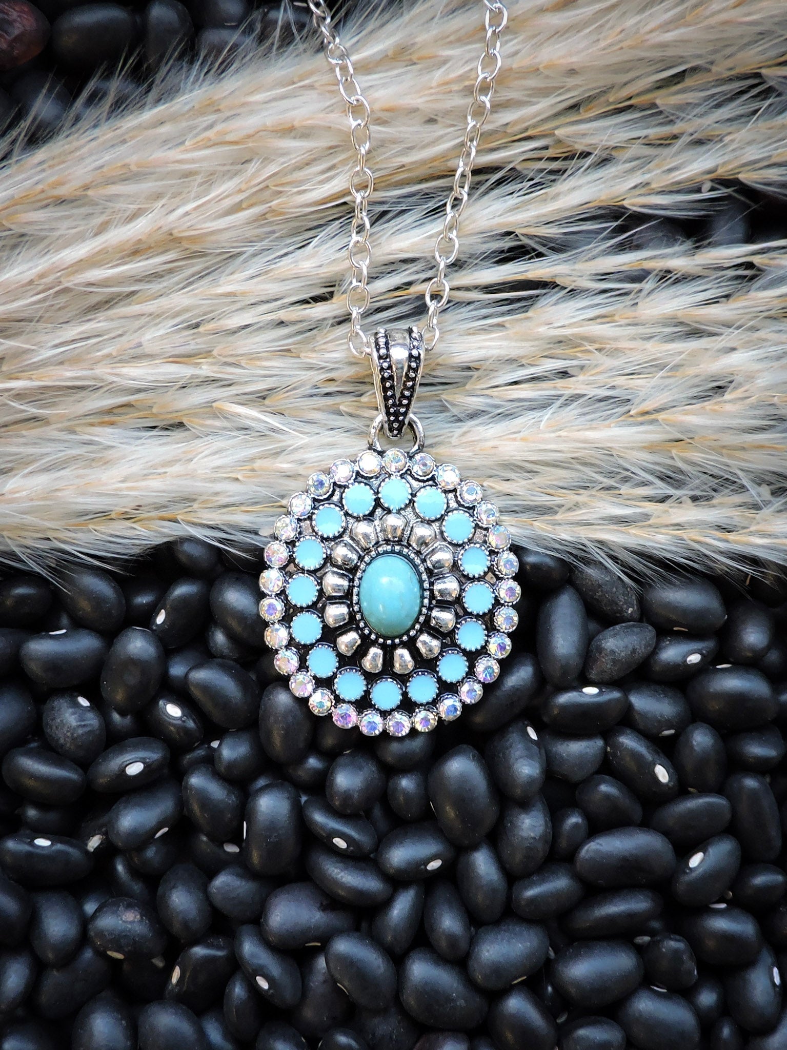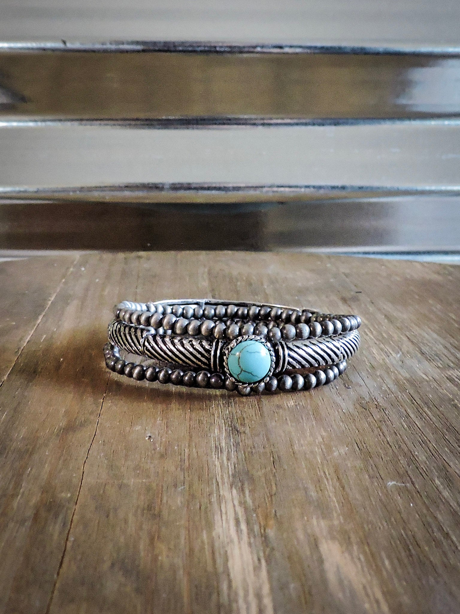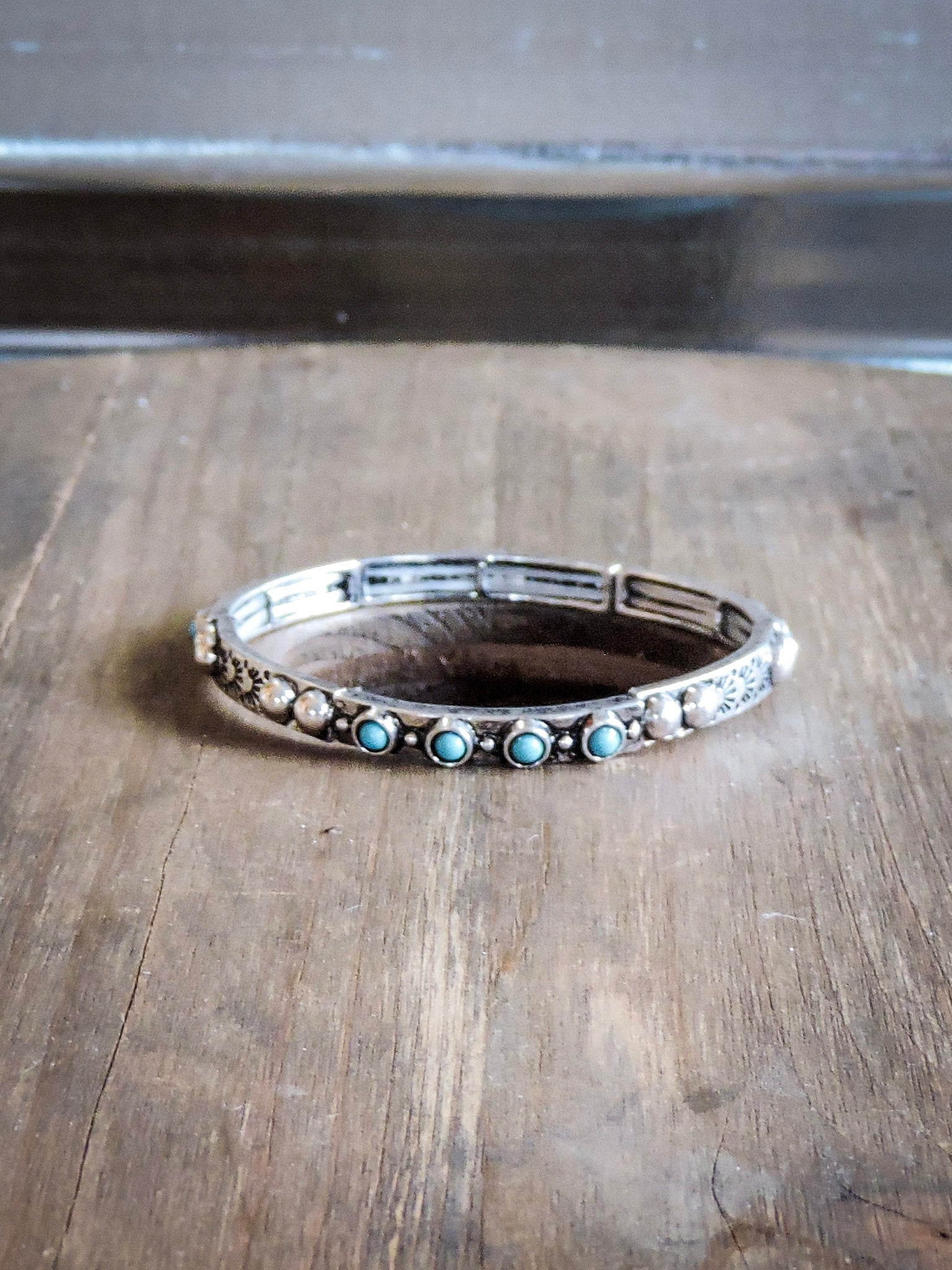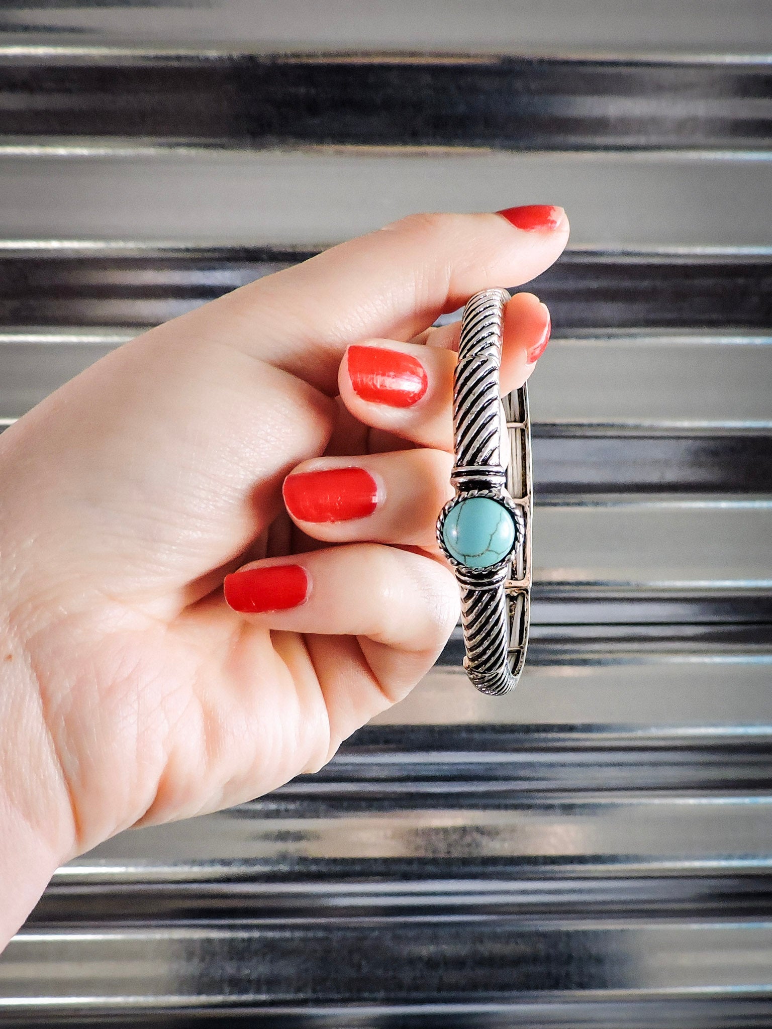 Nova Stud Hoop Fashion Earring - Silver/Turquoise