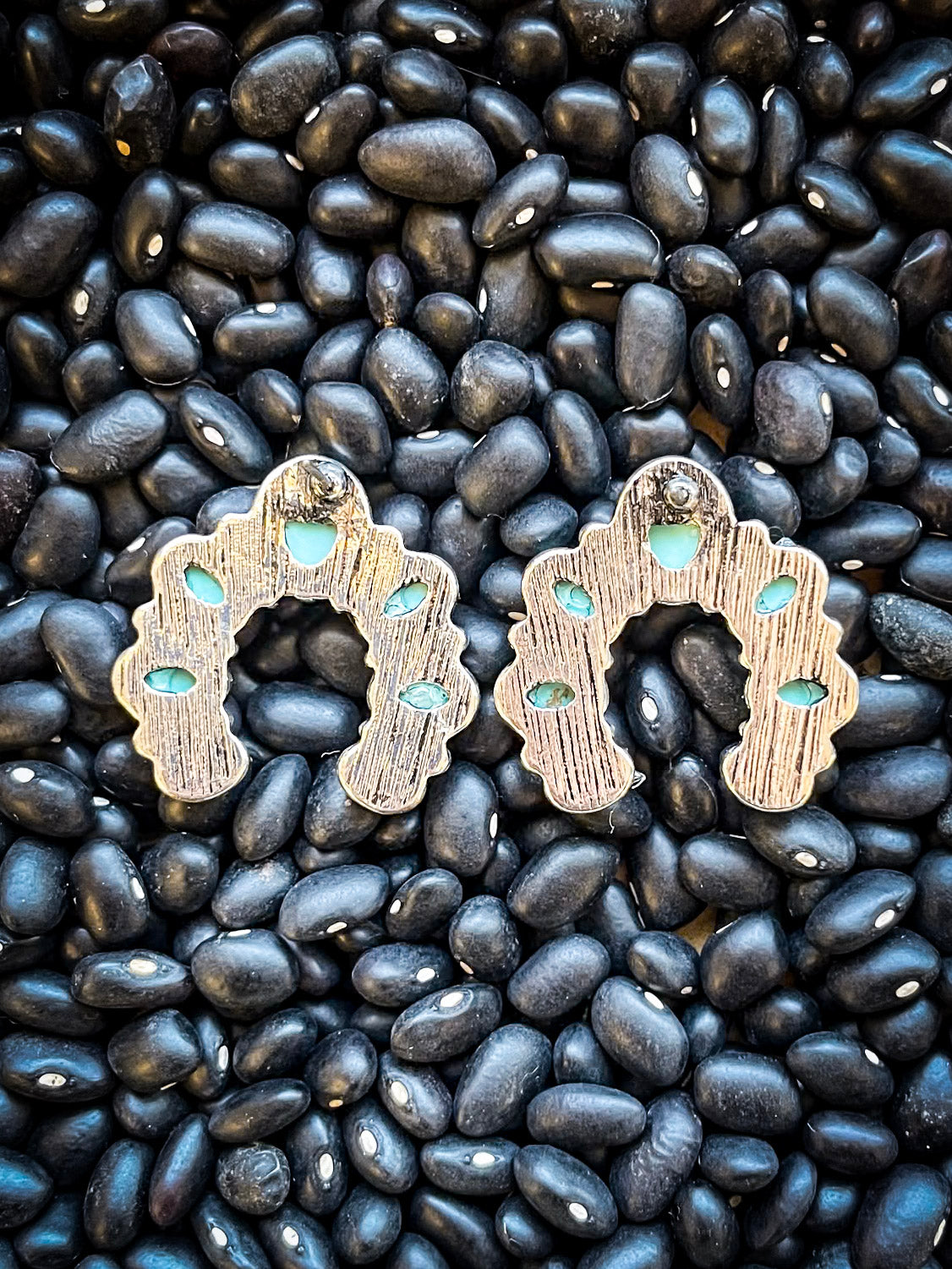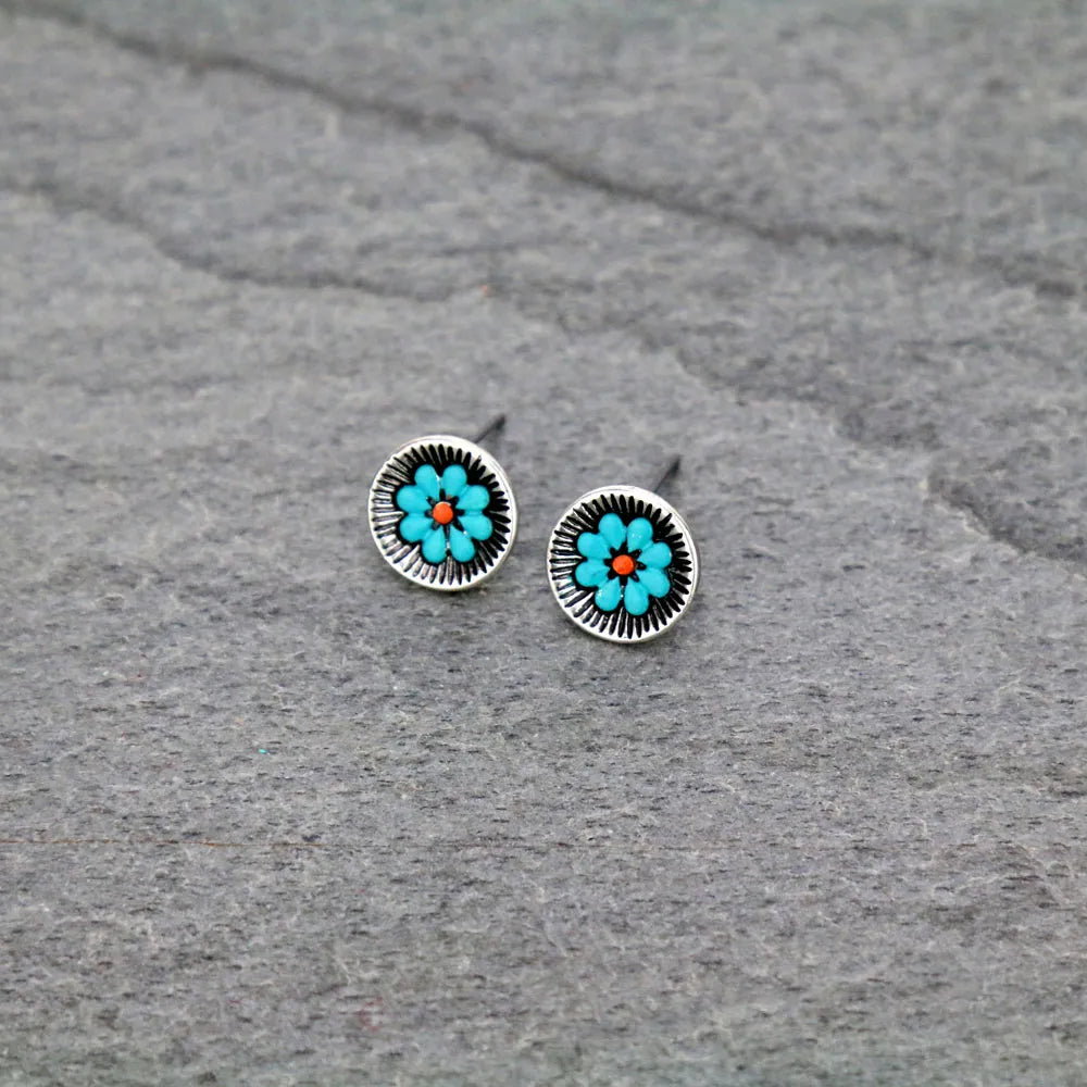Azure Aztec Patterned Metal Stud Fashion Earrings