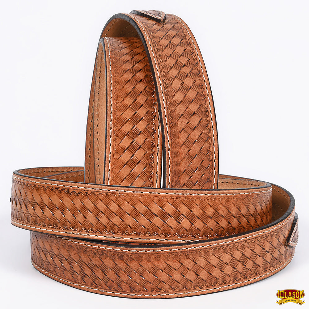 38 In Hilason Basketweave Western Leather Mens Womens Ranger Belt Tan