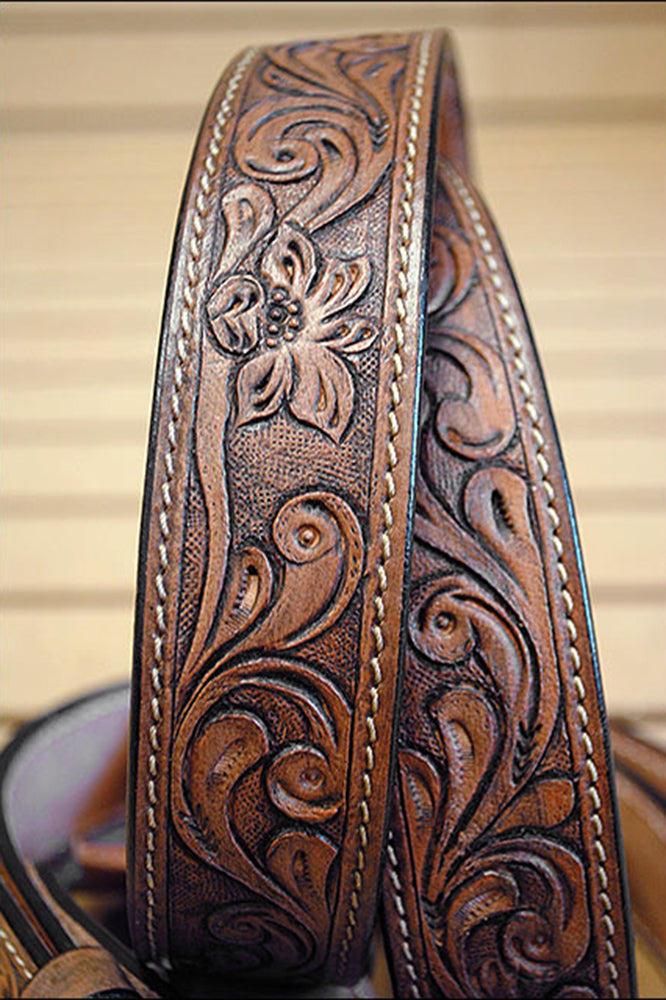 58 In Hilason Hand Tooled Buffalo Hide Western Leather Mens Womens Belt Brown