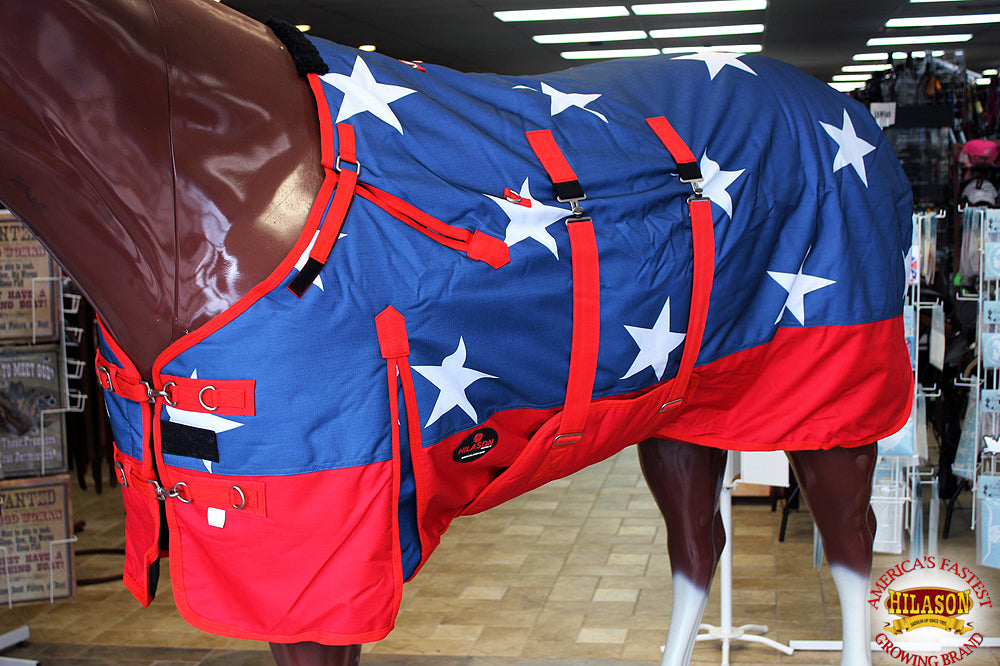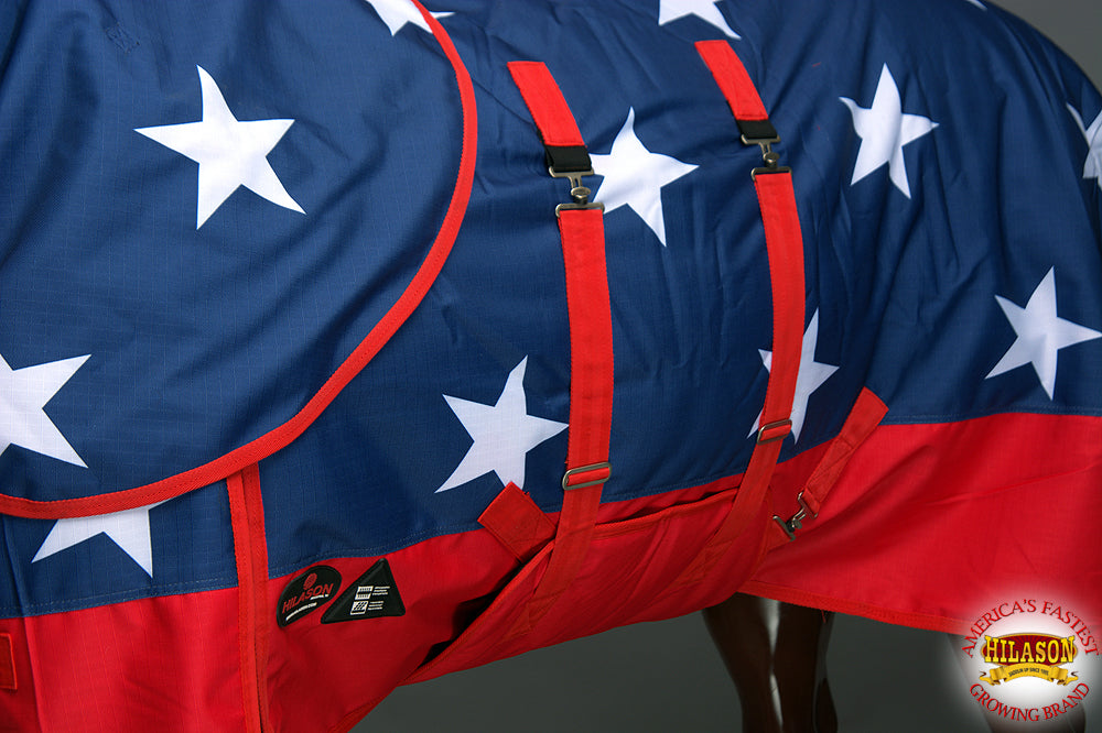 Hilason 1200D Waterproof Horse Hood Turnout Blanket Belly Wrap American Flag