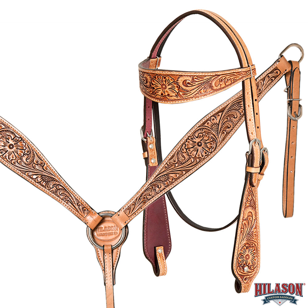 HILASON Western Horse Beaded Floral Headstall Breast Collar One Headstall Spur Strap Wither Strap American Leather Tack Set