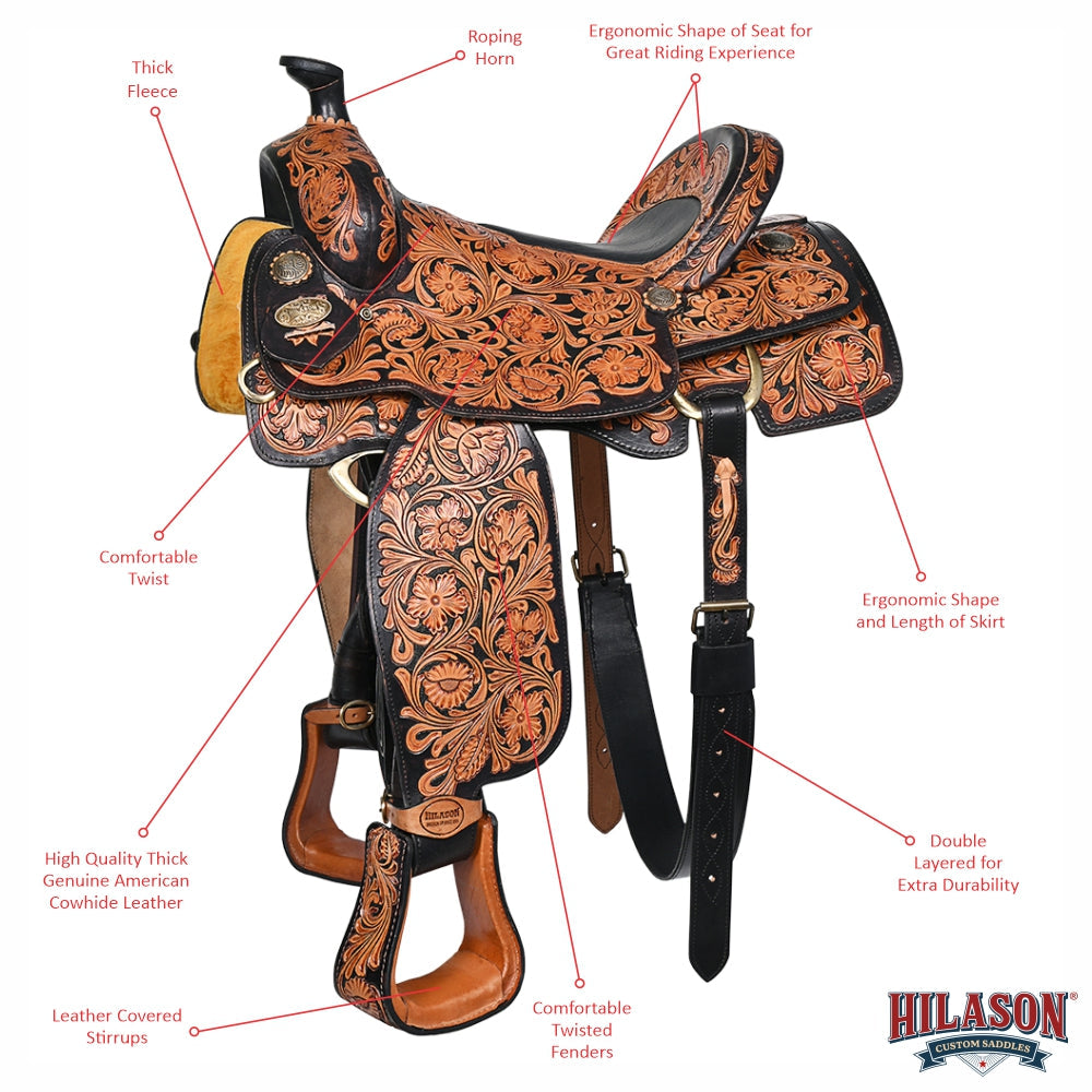 Hilason Western Horse Saddle American Leather Ranch Roping Cowboy