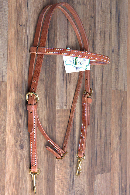 3/4" Hilltop Hermann Oak Harness Leather Snap Cheeks Horse Browband Headstall