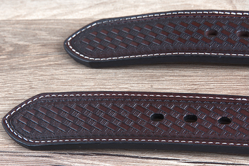 32" Roper Mens Basketweave Top Grain Leather Belt Bark Design 1 1/2" Wide Brown