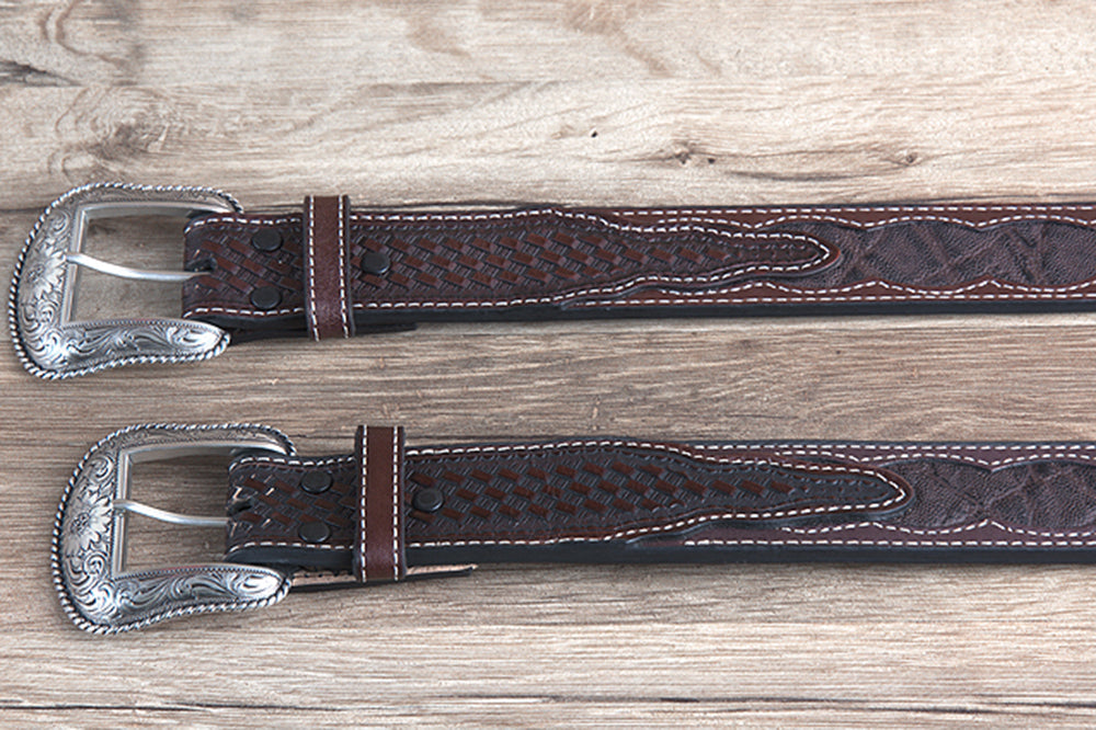 32" Roper Western 1.5" Elephant Print Basketweave Ends Mens Cowboy Belt Brown