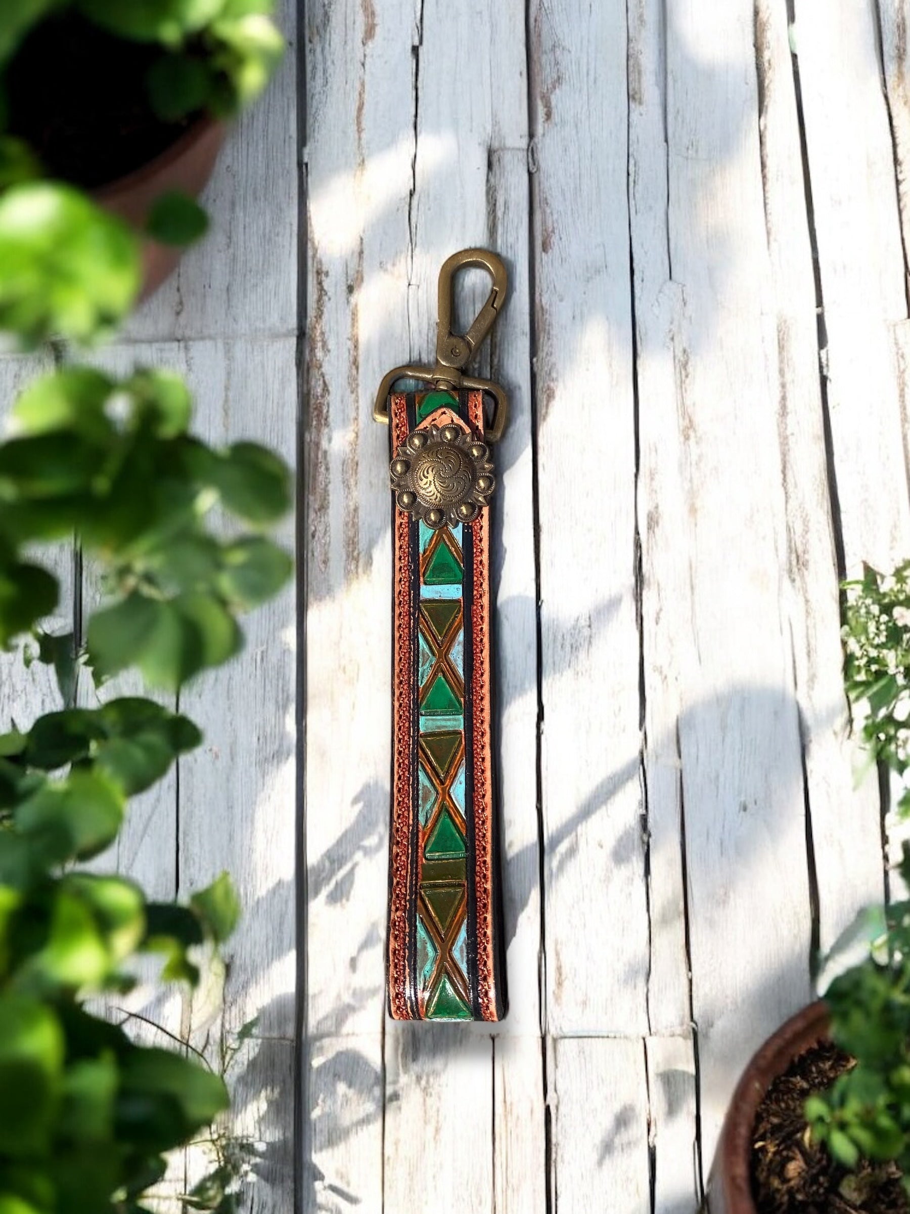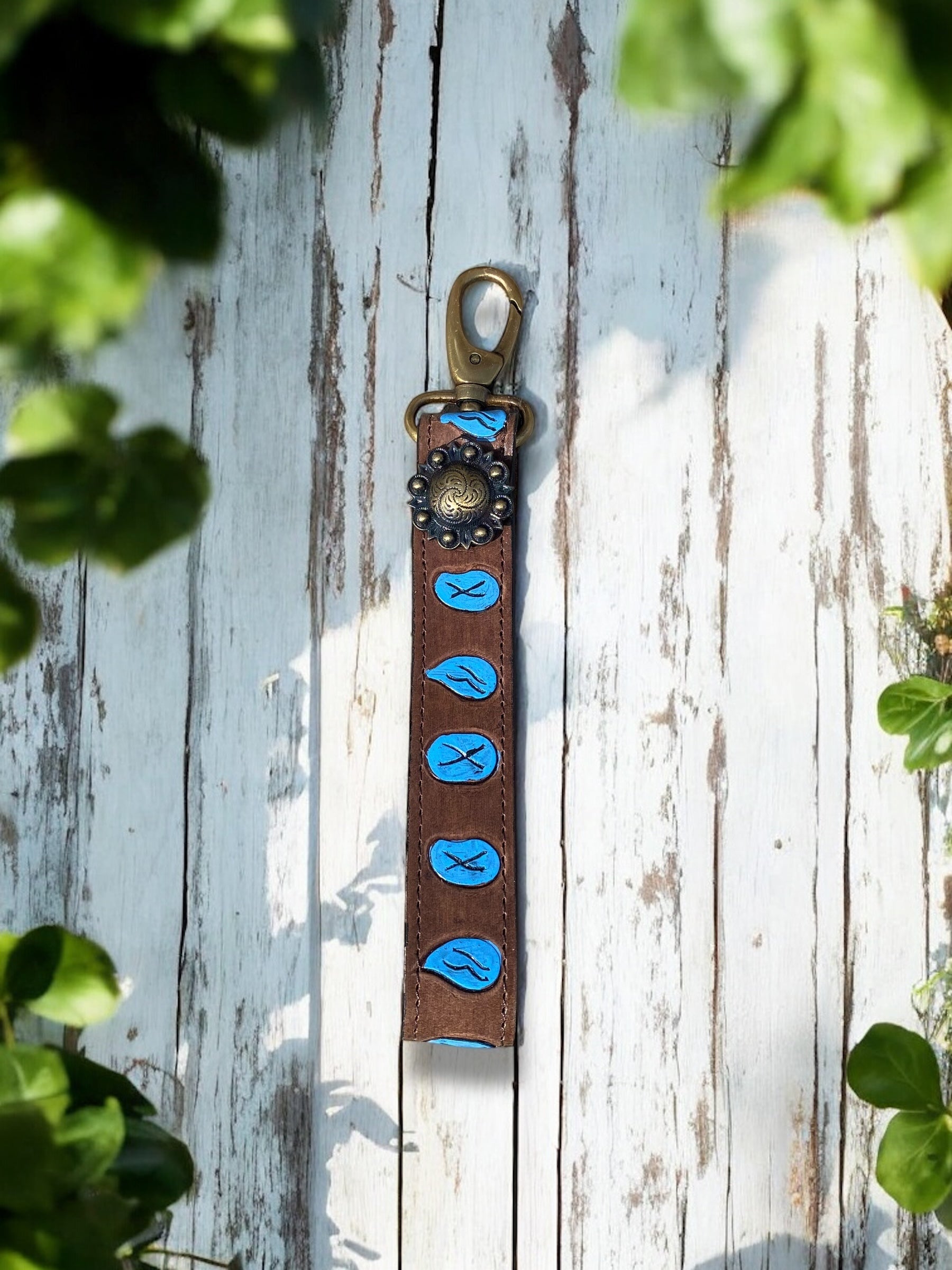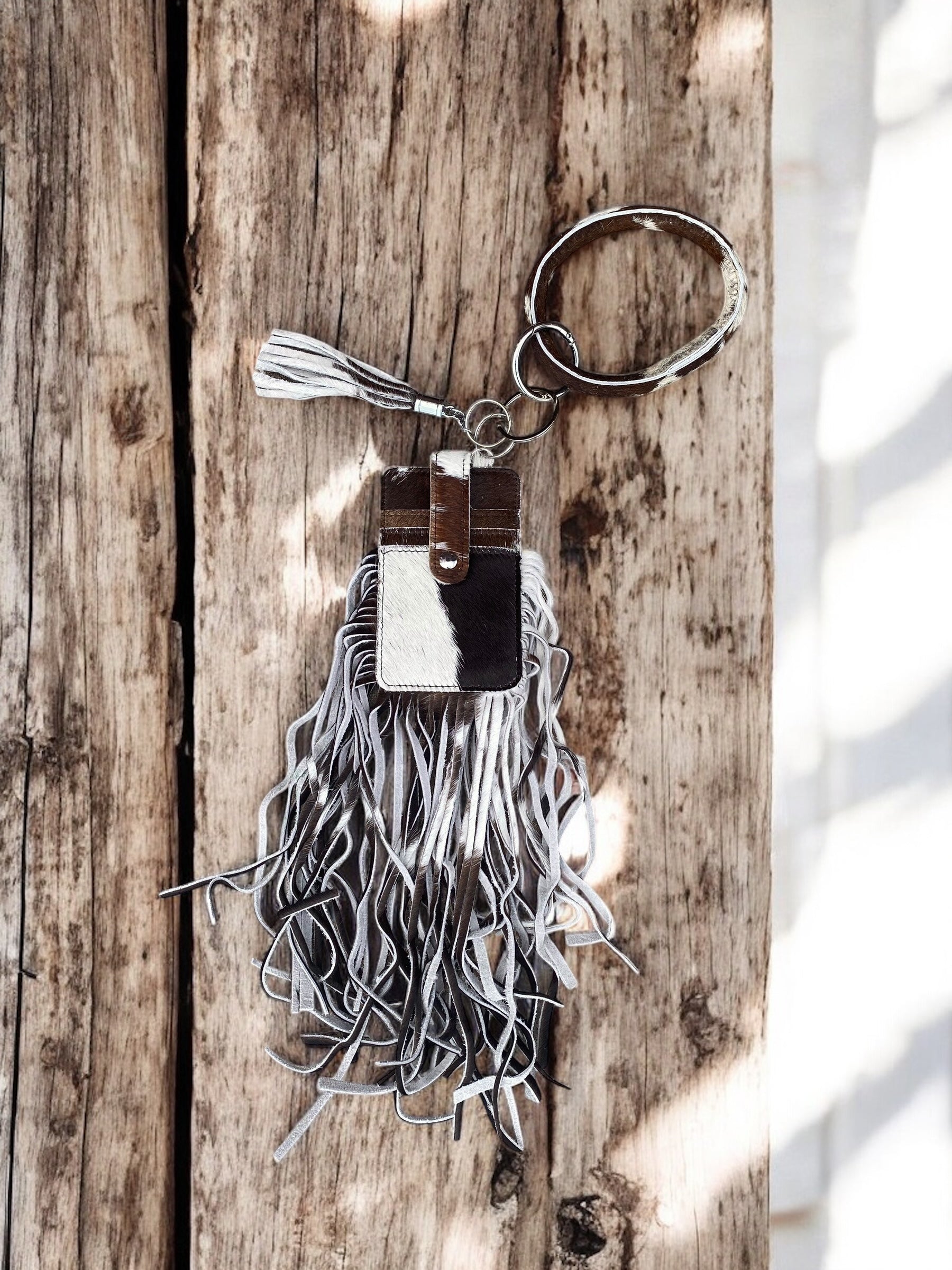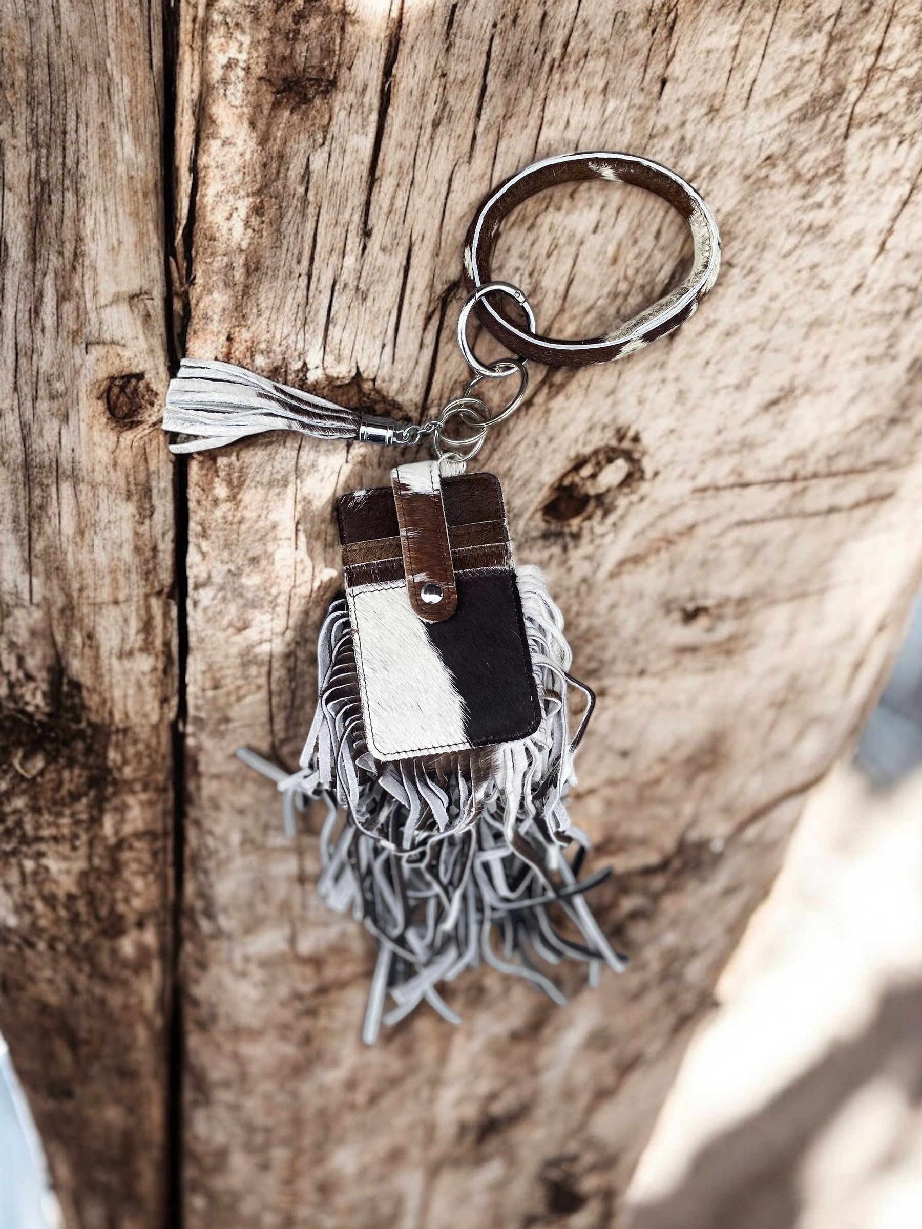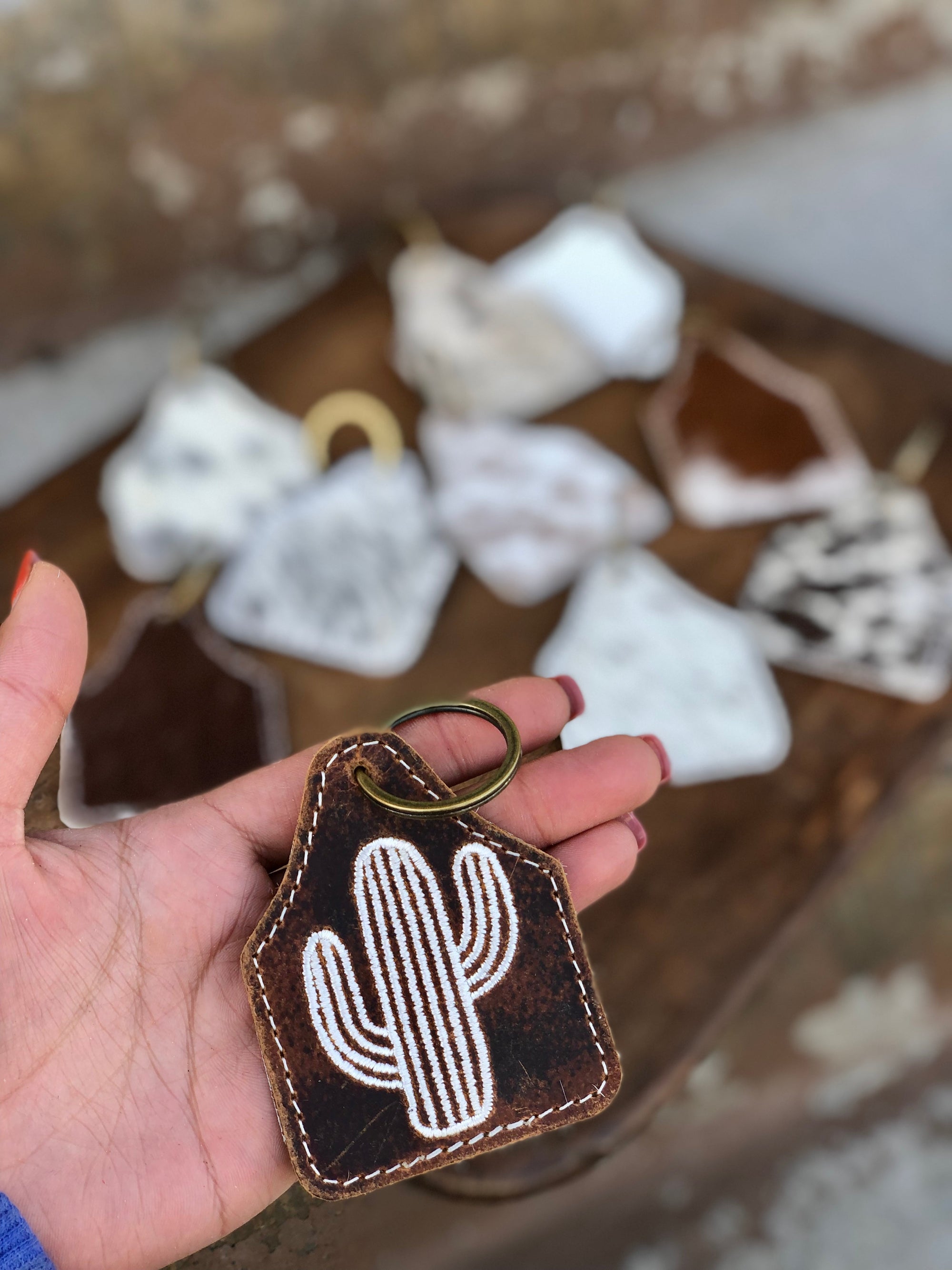 Cactus Rustic Leather & Cowhide Keychain 1pc