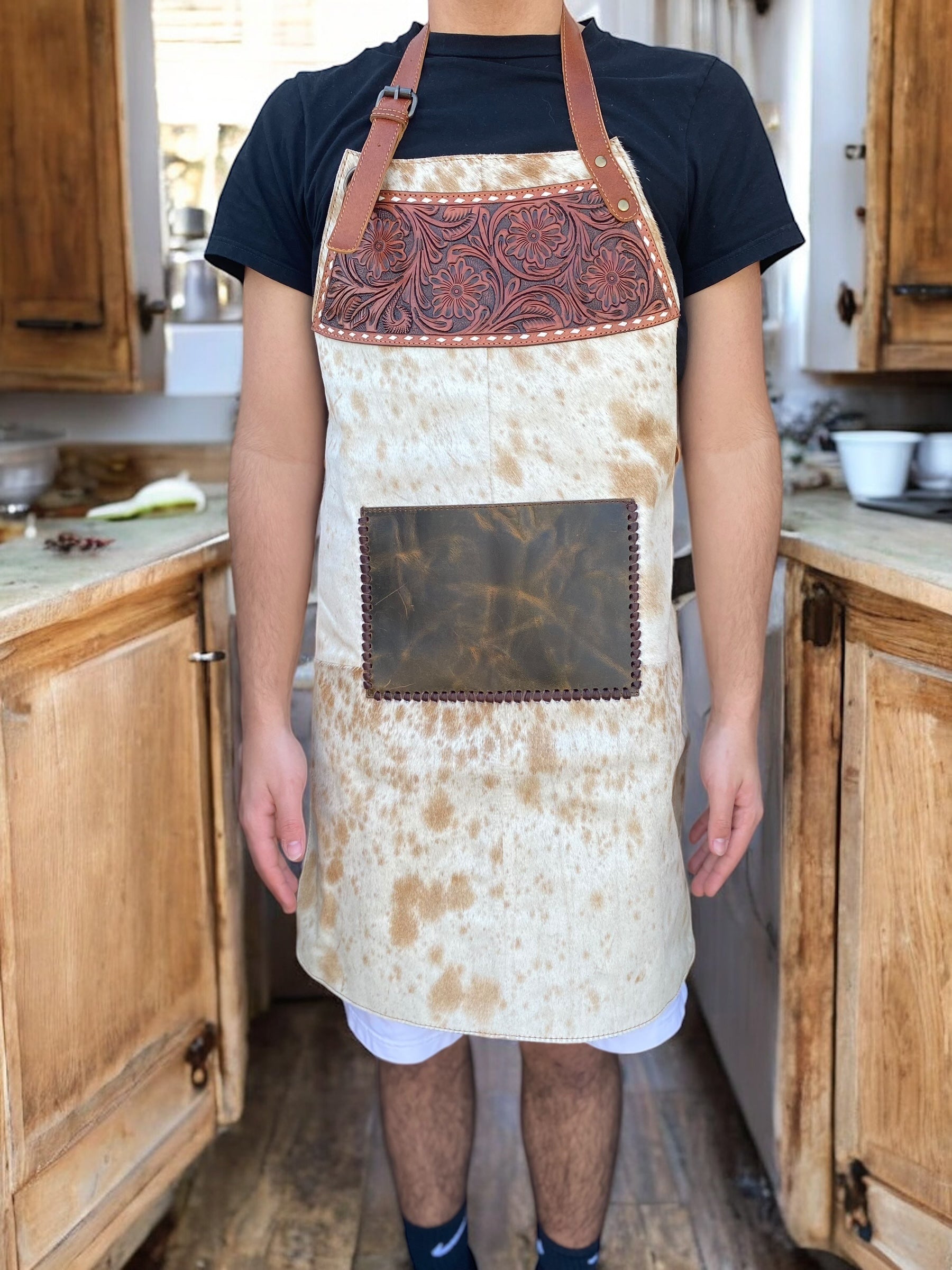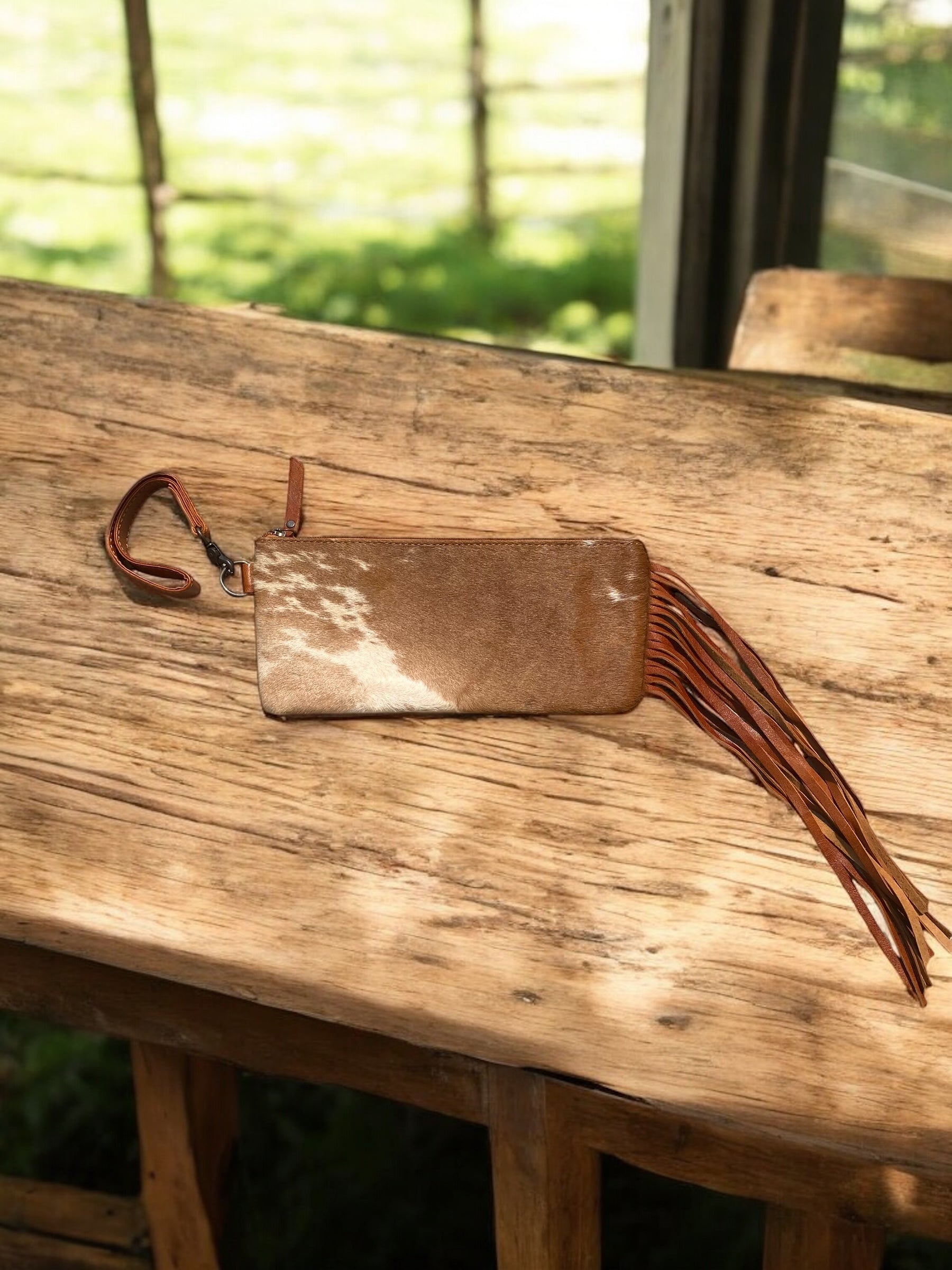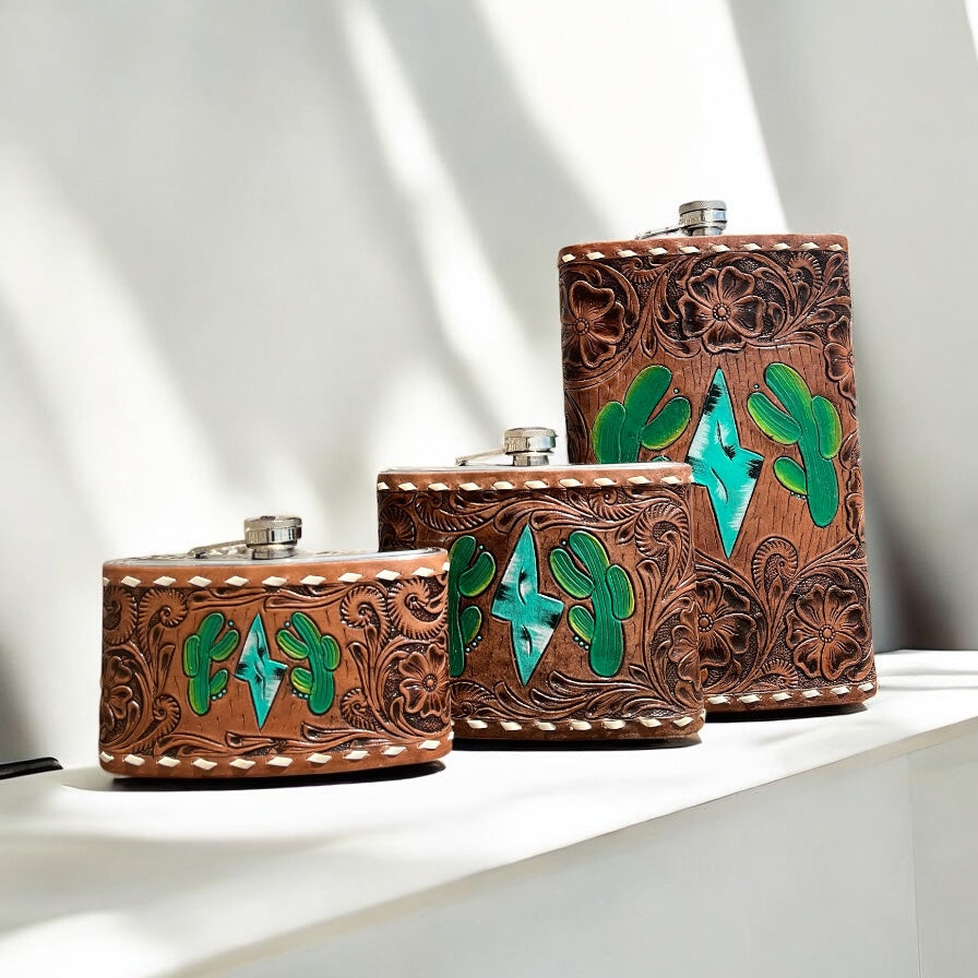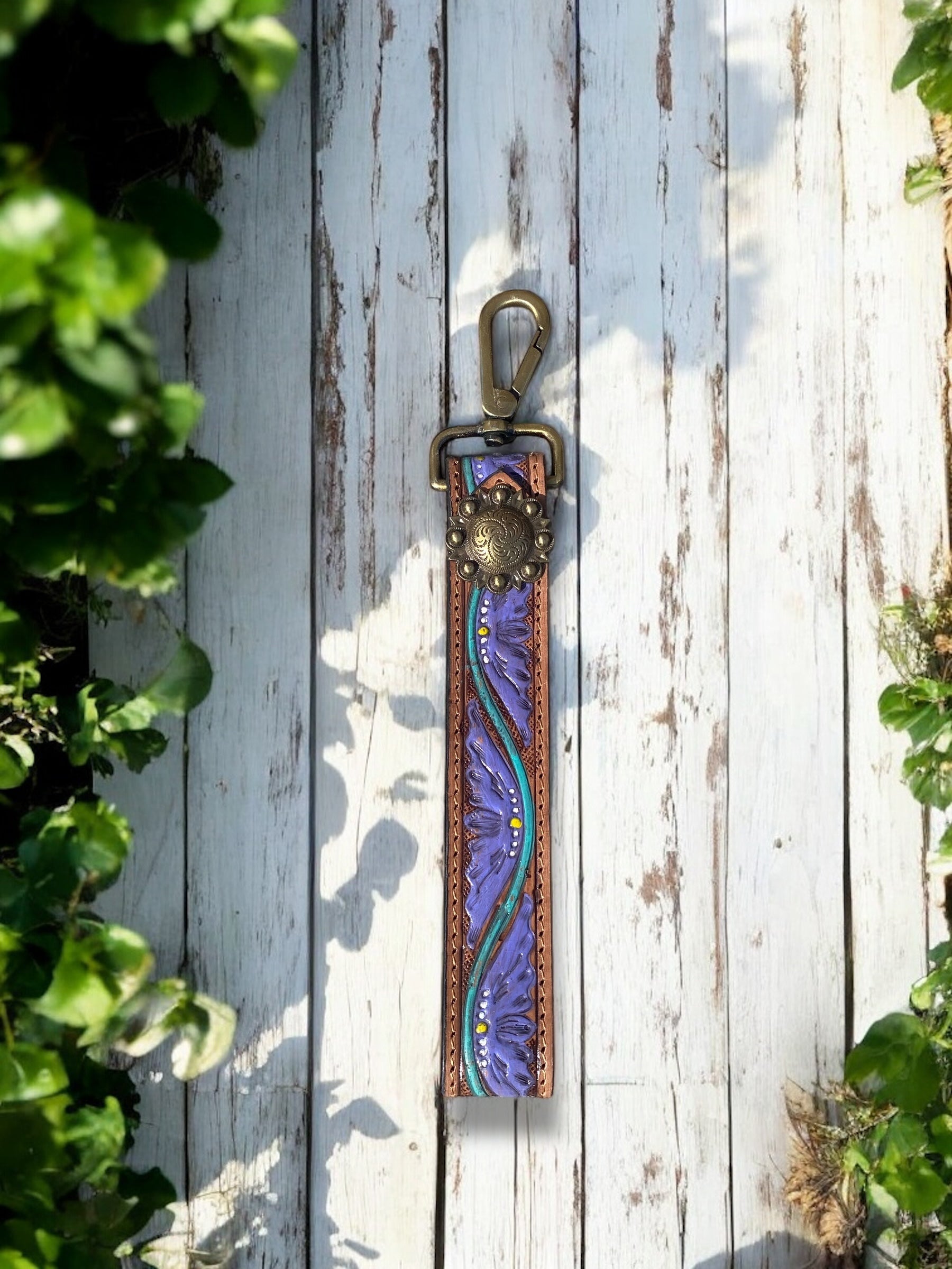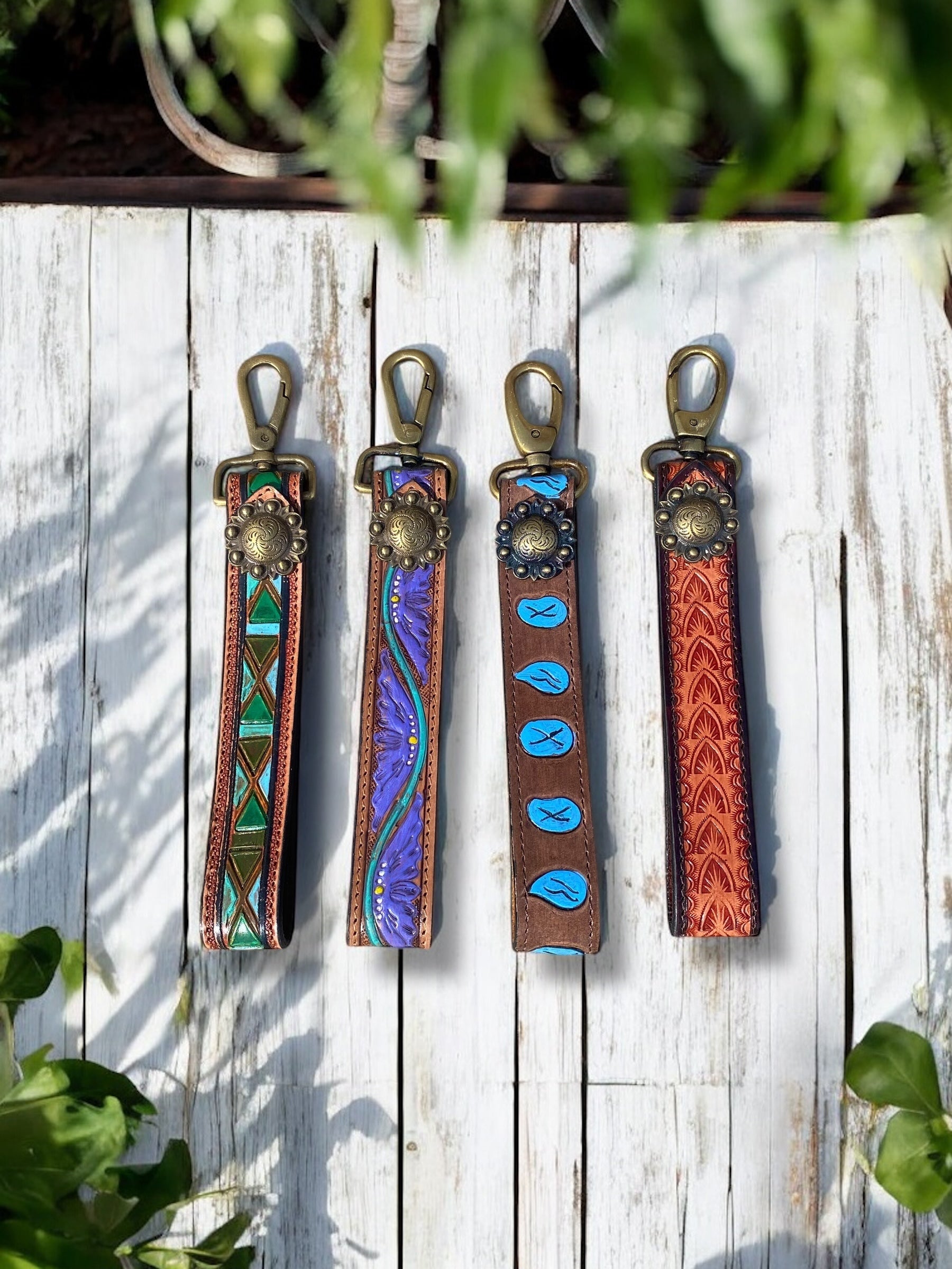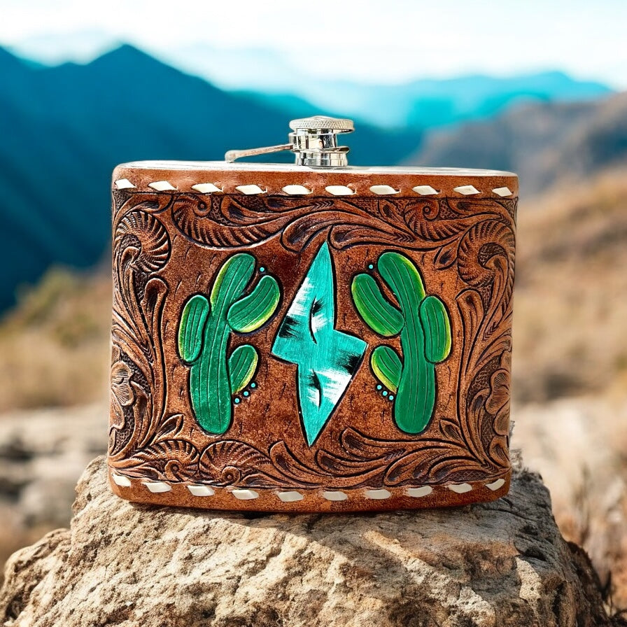 Cactus Rustic Leather & Cowhide Keychain 1pc
