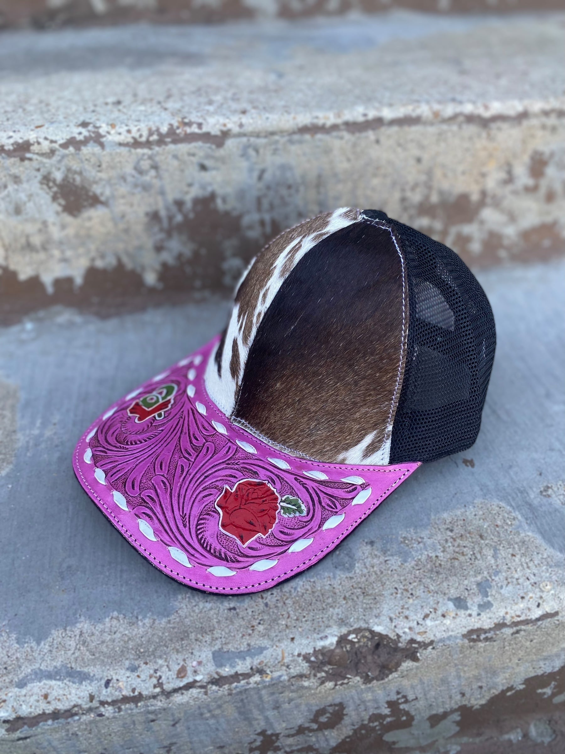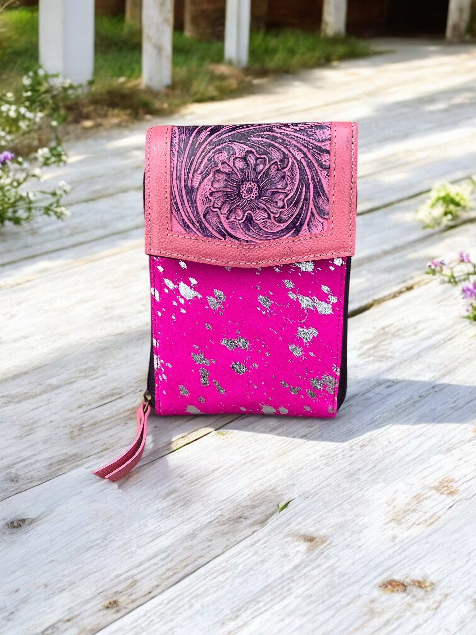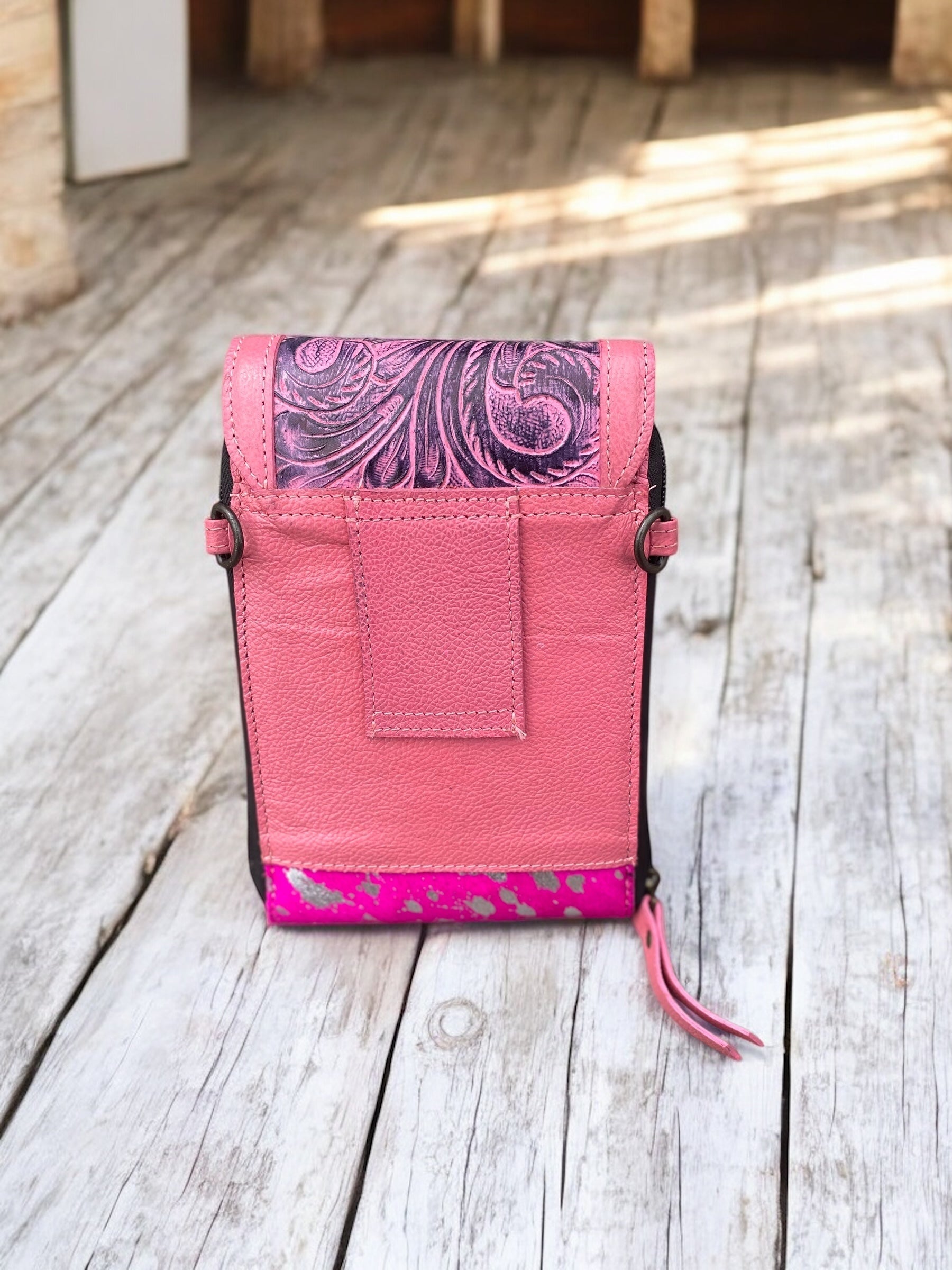 Pink Acid Wash Silver Cowhide & Tooled Crossbody
