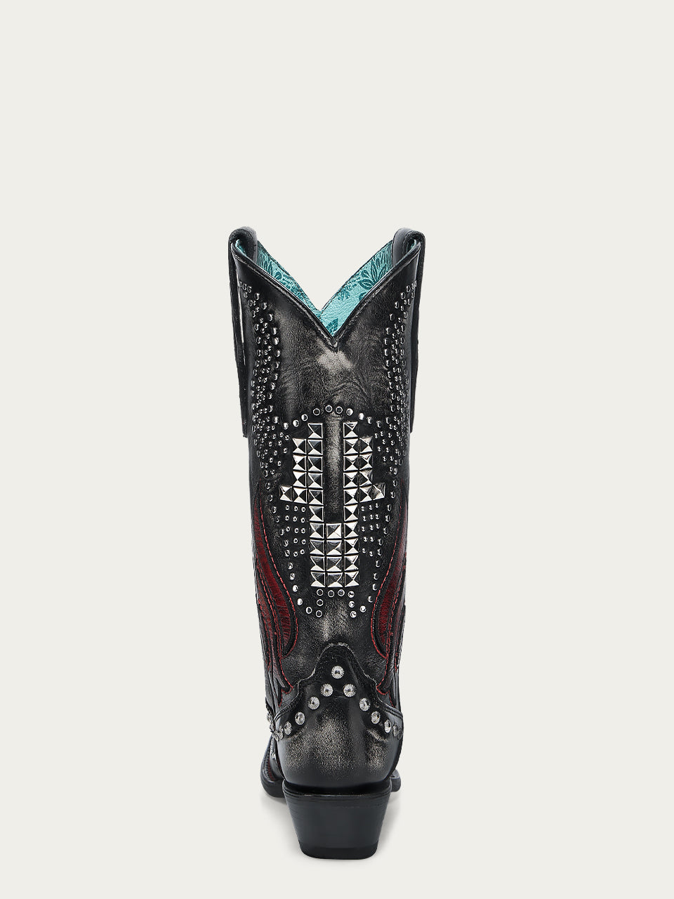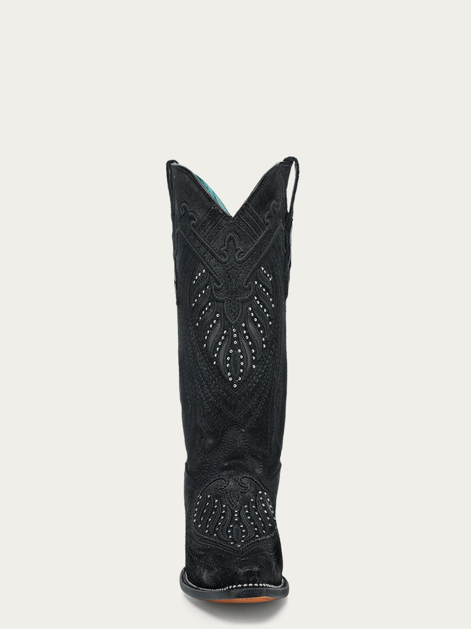 A4729 - WOMEN'S OVERLAY EMBROIDERY AND STUDS BLACK SNIP TOE COWBOY BOOTS
