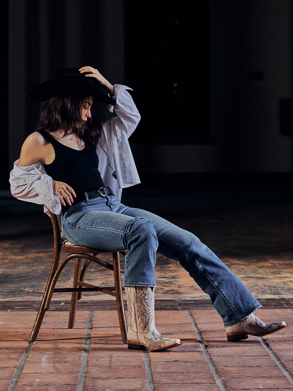 A4793 - WOMEN'S EMBROIDERY TAN J TOE COWBOY BOOT
